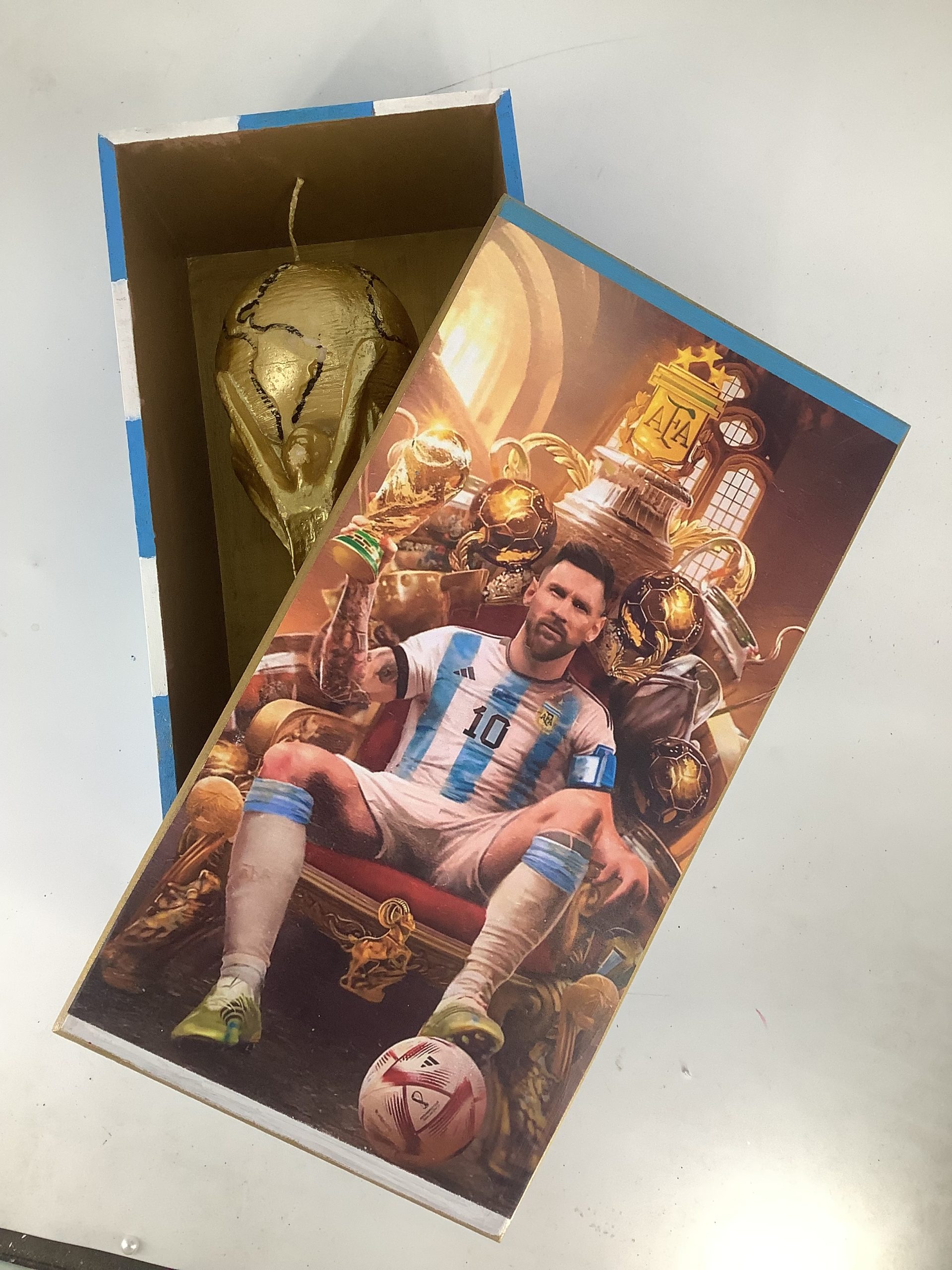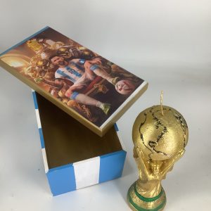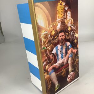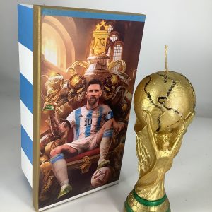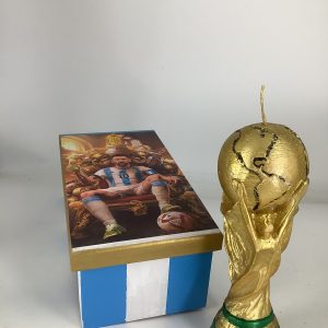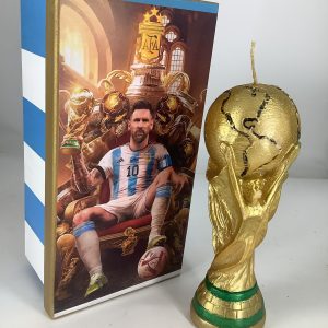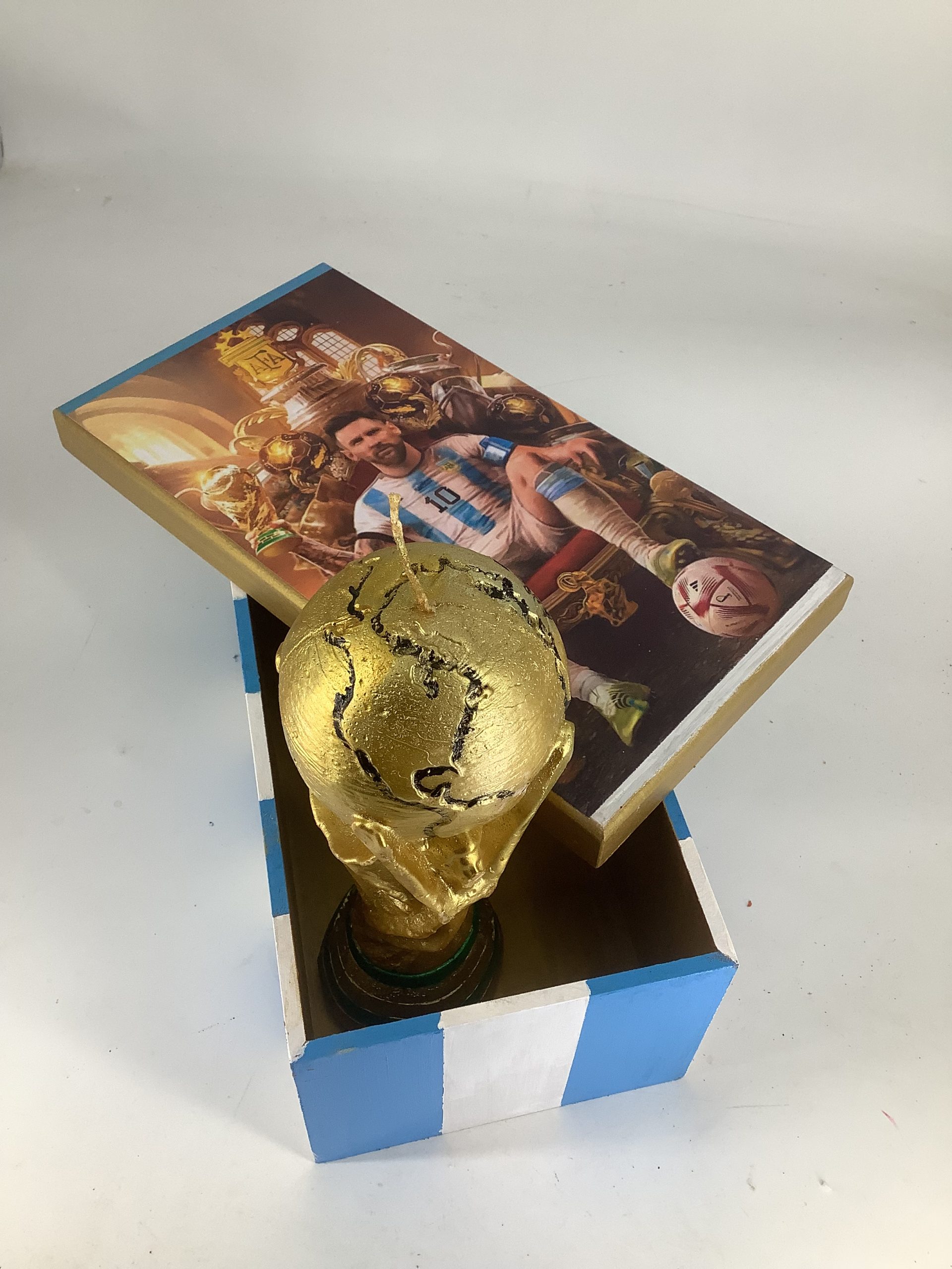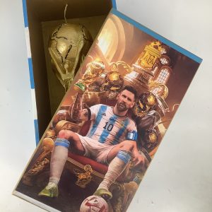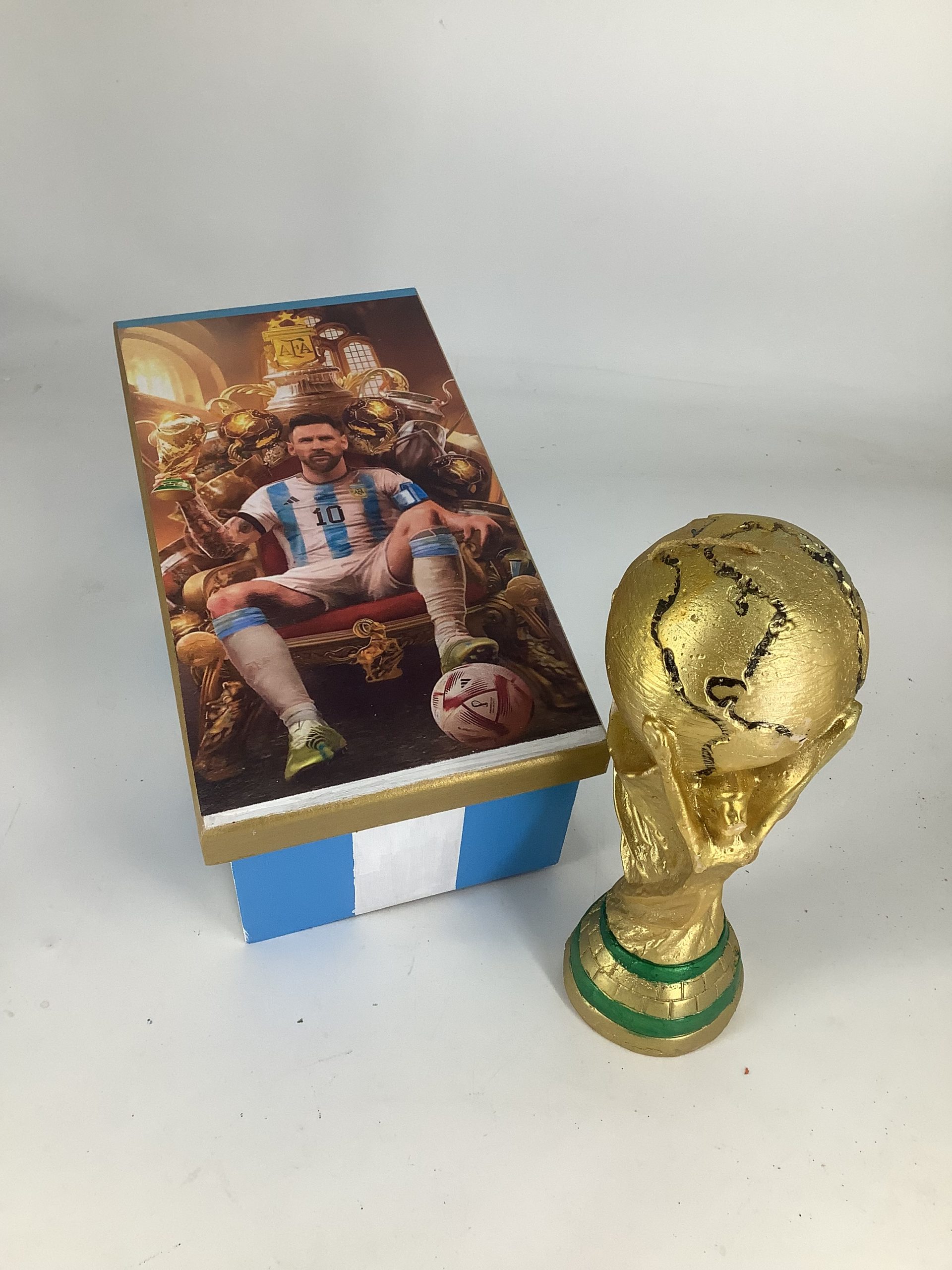 Χειροποίητο κουτί με τρόπαιο με τον αγαπημένο σας ποδοσφαιριστή Lionel Messi. Συνοδεύεται με 3D λαμπάδα τρόπαιο για να είναι και φέτος η λαμπάδα σας μοναδική.