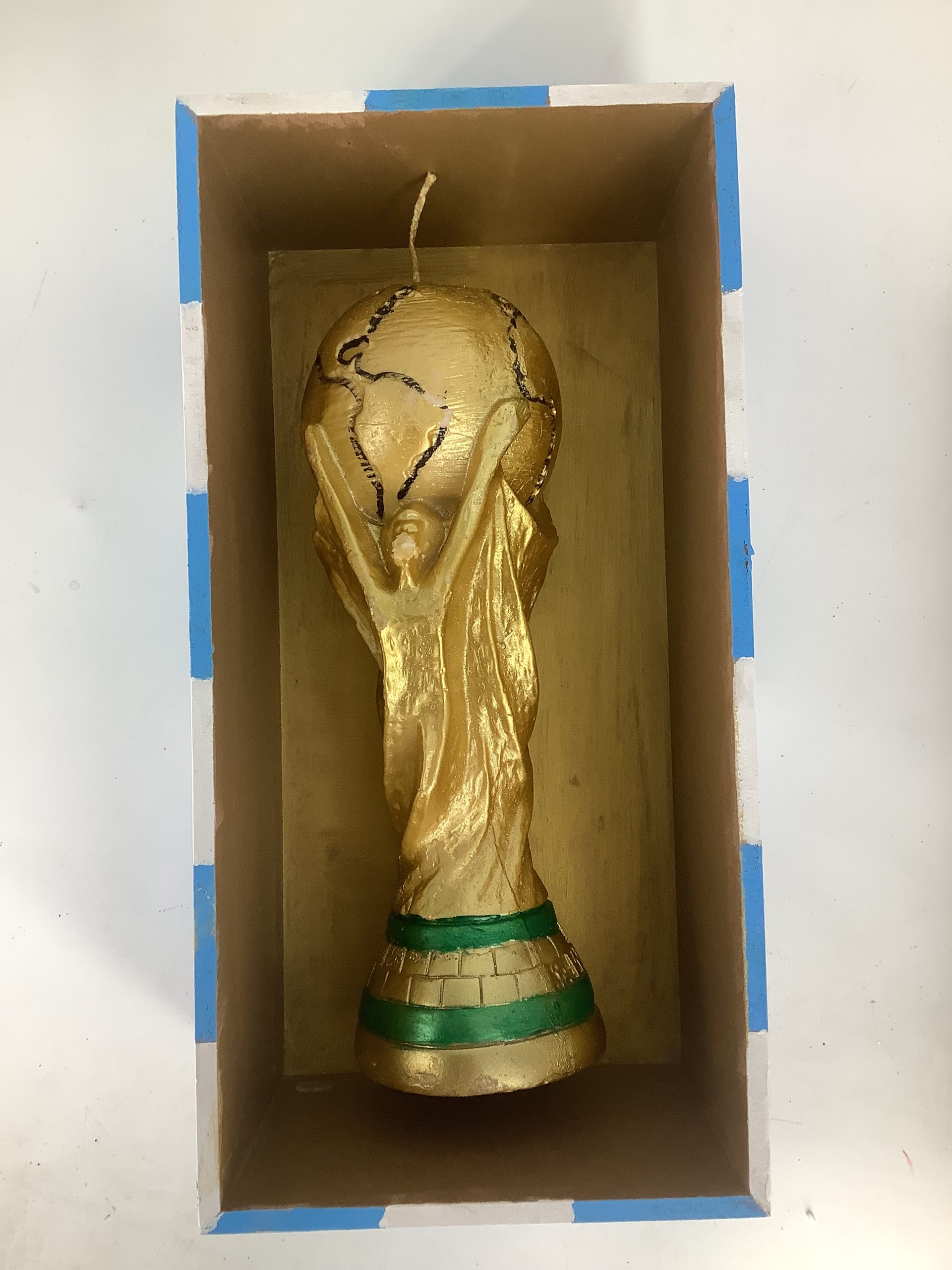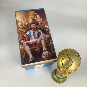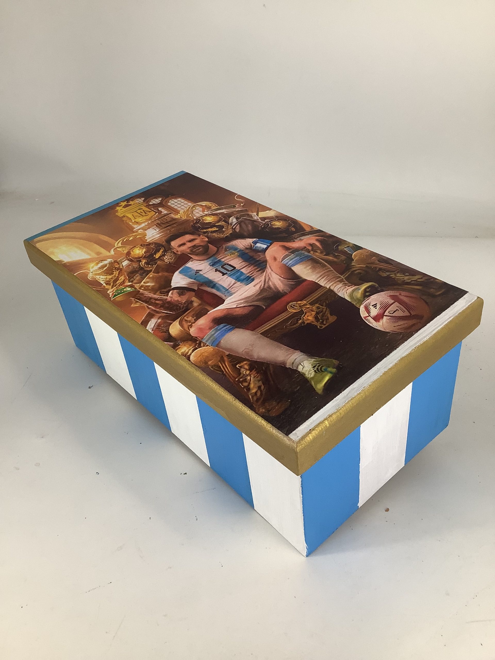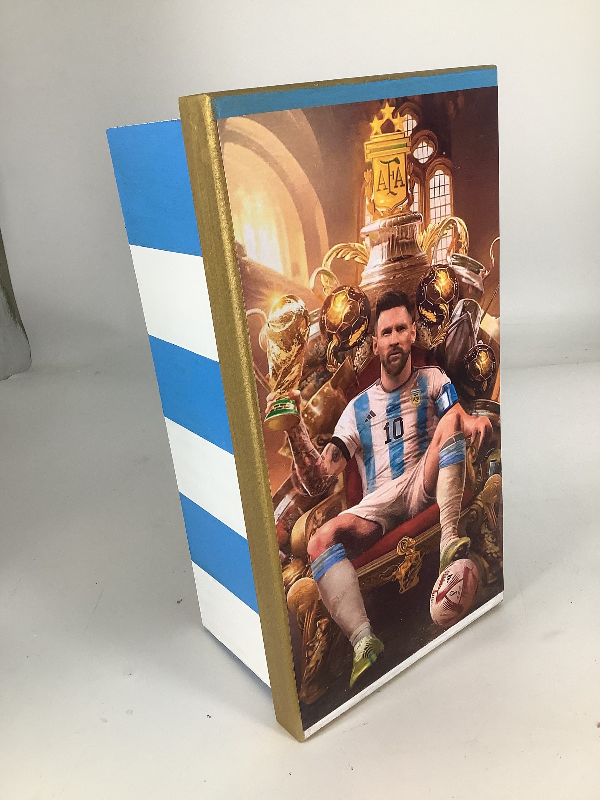 Χειροποίητο κουτί με τρόπαιο με τον αγαπημένο σας ποδοσφαιριστή Lionel Messi. Συνοδεύεται με 3D λαμπάδα τρόπαιο για να είναι και φέτος η λαμπάδα σας μοναδική.