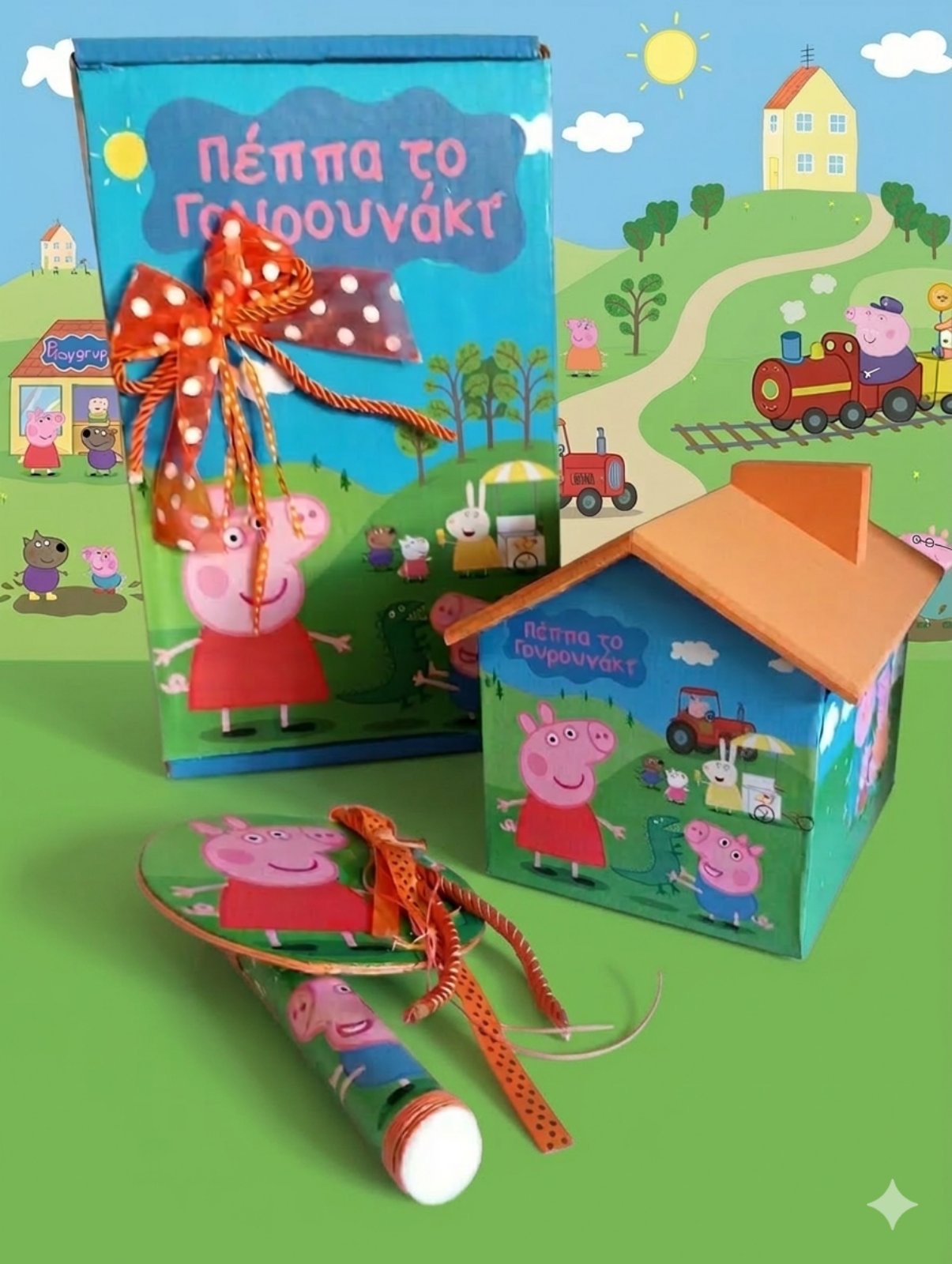 Εντυπωσιάστε το βαφτιστήρι σας με την πιο όμορφη λαμπάδα Πέππα. Ένα μοναδικό σπιτάκι κουμπάρας σε μεγάλη διάσταση για να μπορεί να το έχει όλη τη χρονιά και να στολίσει με αυτό το δωμάτιο του. Επιπλέον μεγάλο διακοσμητικό στολίδι μαγνητάκι πάνω στην λαμπάδα που χρησιμοποιείται σαν παιχνίδι και είναι αγαπητό για όλα τα παιδιά. Μια υπέροχη επιλογή από μια καταπληκτική νονά.