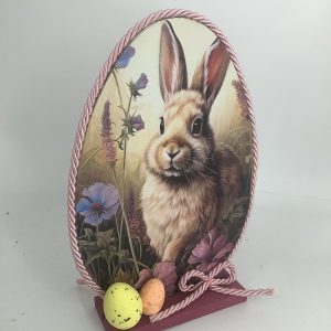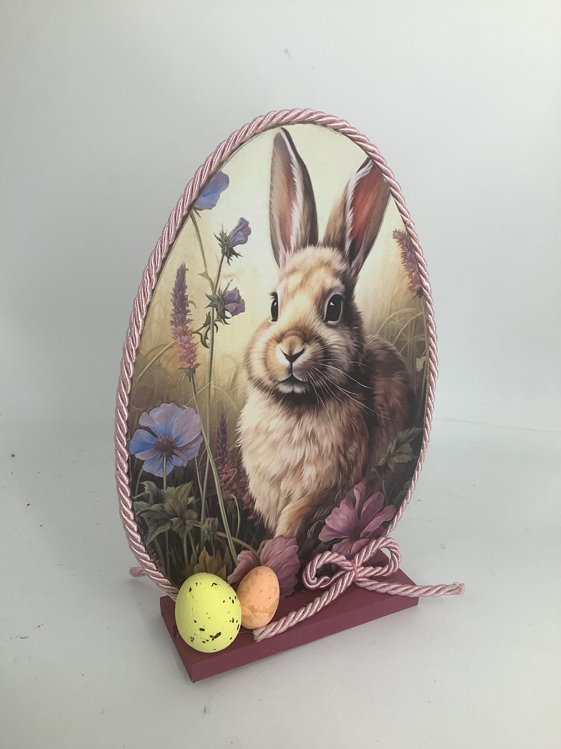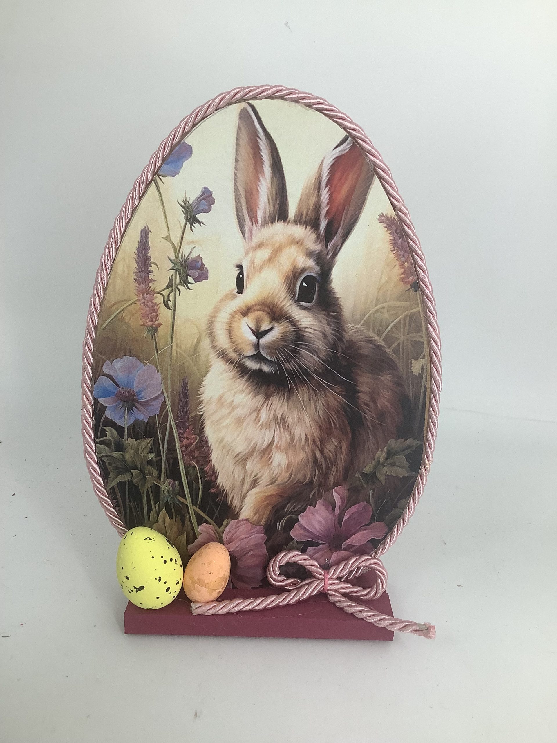Πασχαλινό διακοσμητικό ξύλινο αυγό 20cm με χαριτωμένο κουνελάκι σε αποχρώσεις του ροζ. Ένα εξαιρετικό χειροποίητο διακοσμητικό για τα κάνετε και εσείς ένα μοναδικό δώρο στους αγαπημένους σας.