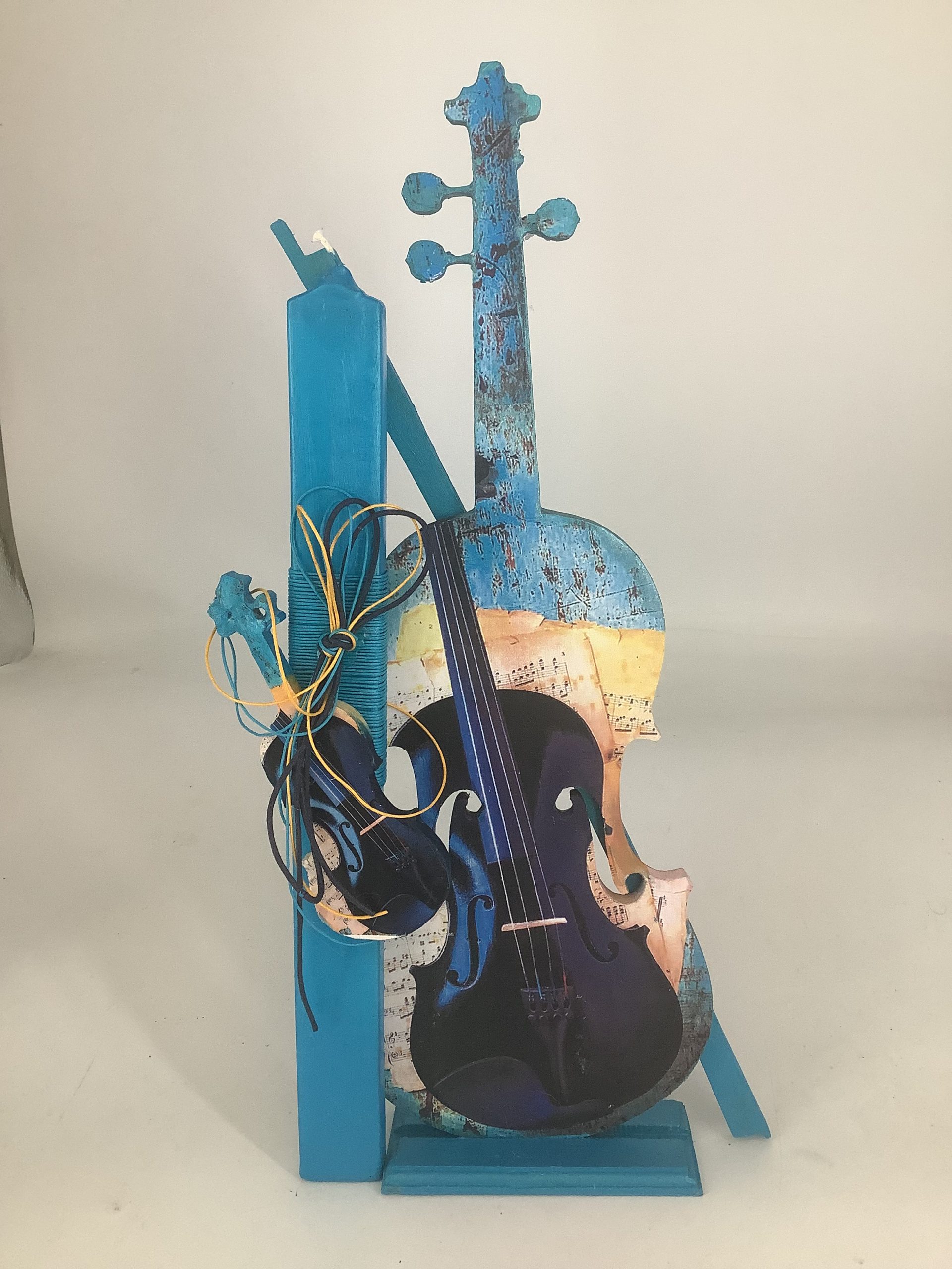 Διακοσμητικό χειροποίητο βιολί σε μπλε αποχρώσεις για να κάνετε δώρο στους αγαπημένους σας βαφτιστήρι.
