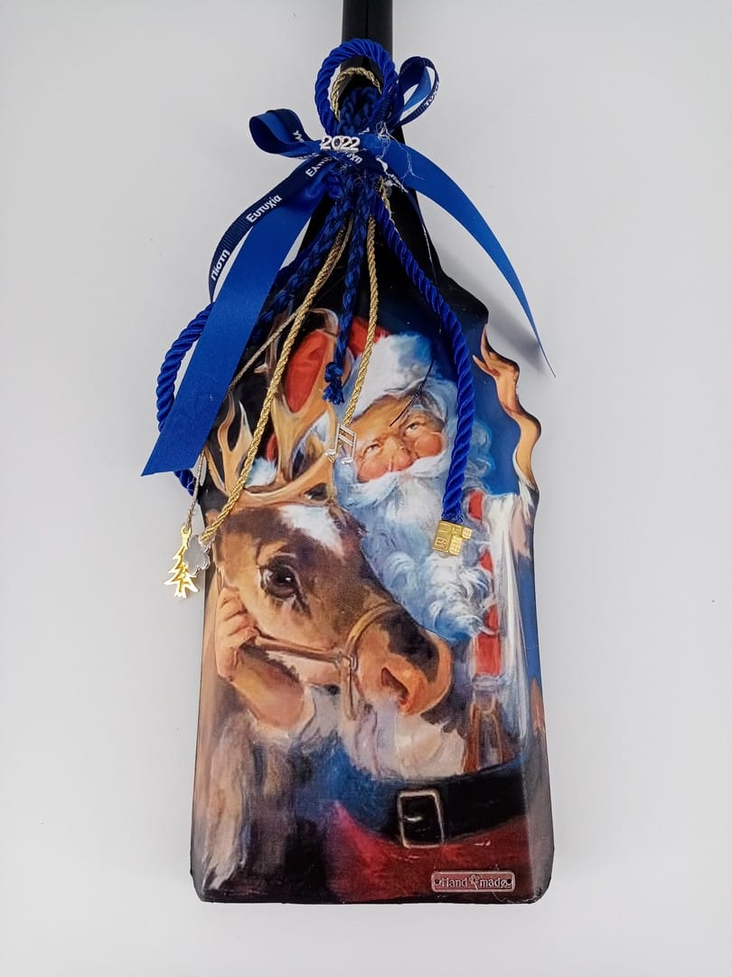 Μεταλλικό φαράσι μαύρο με μπλε αποχρώσεις με θέμα τον άγιο Βασίλη υπέροχο δώρο μοναδικής αισθητικής για να εντυπωσιάσετε αγαπημένους φίλους και συγγενείς.