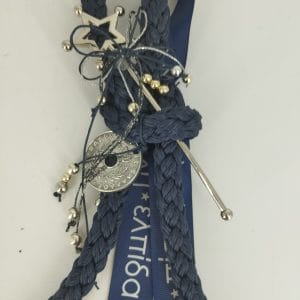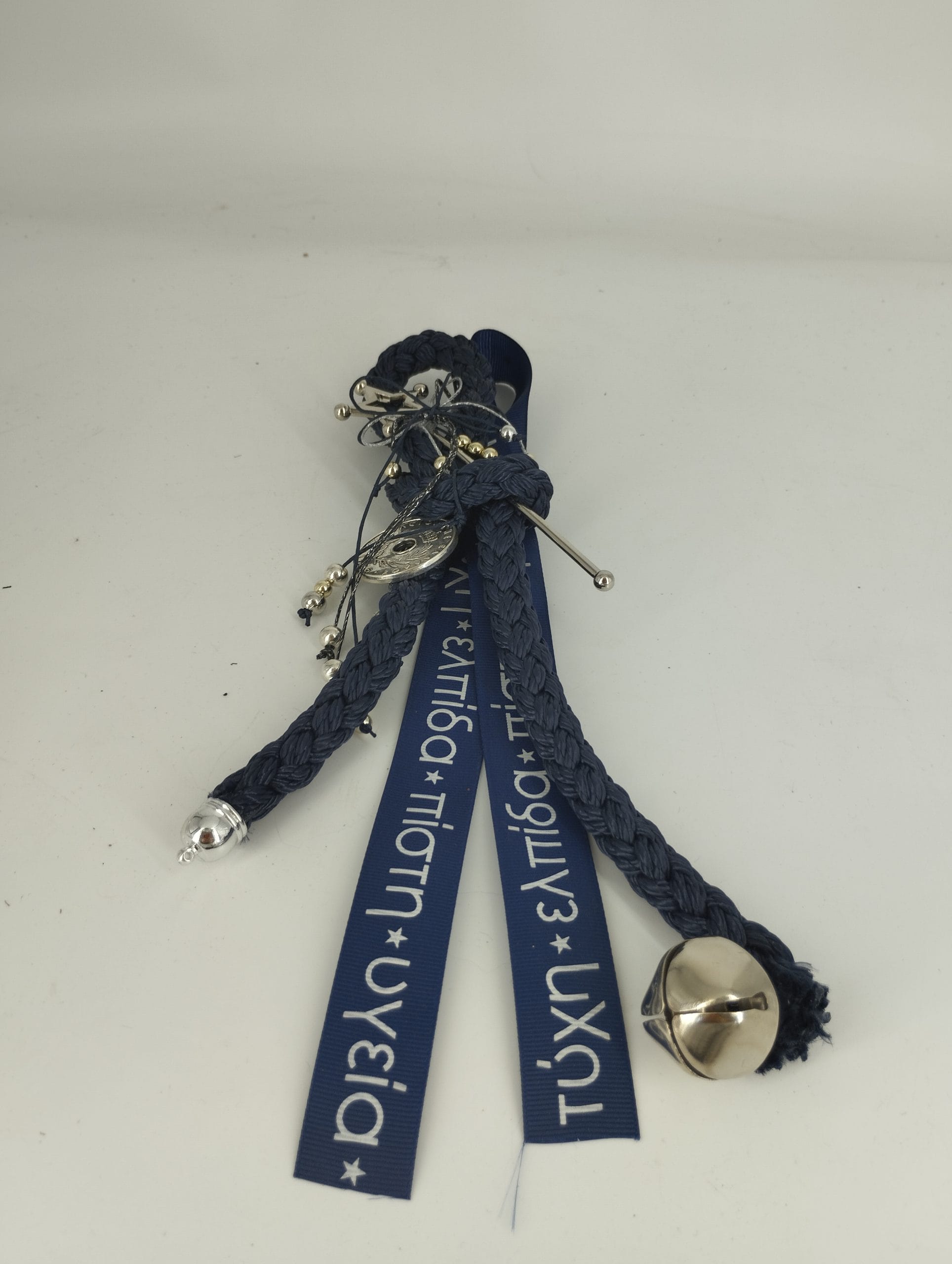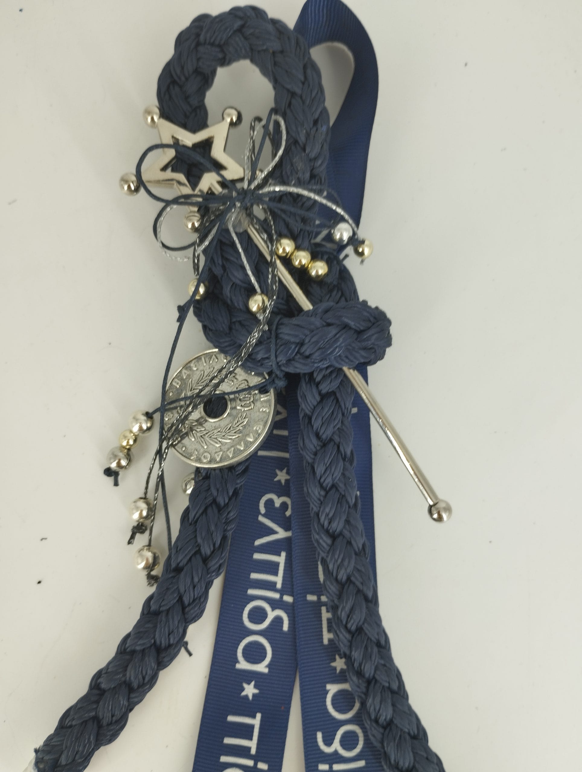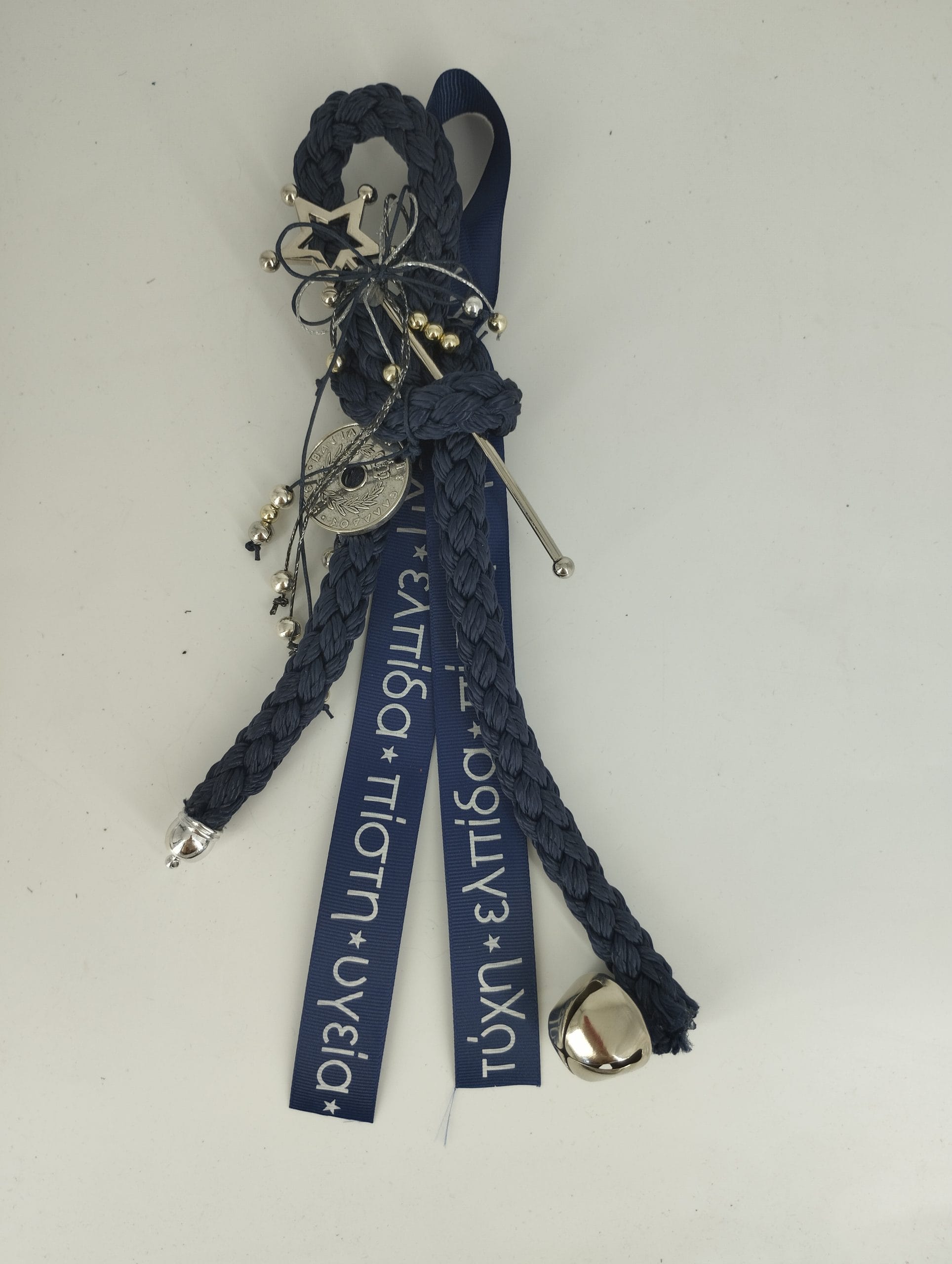 Γούρι με χοντρό μπλε σκηνή και μεταλλικά στοιχεία που θα κάνουν το δώρο σας μοναδικό και υπέροχό για να πείτε καλή χρονιά.
