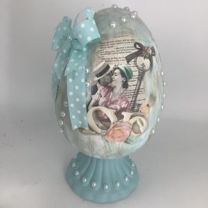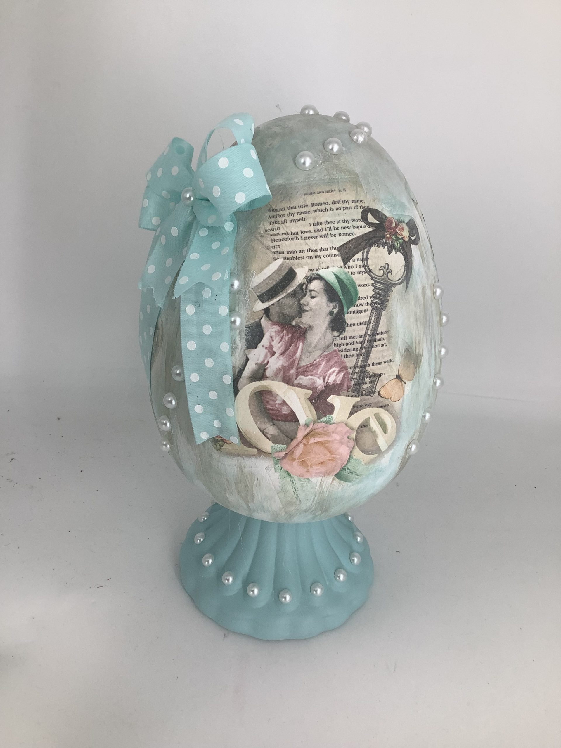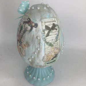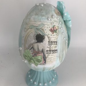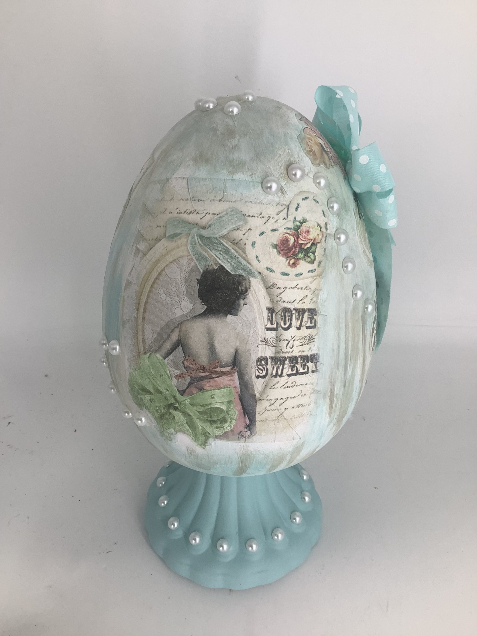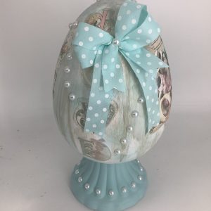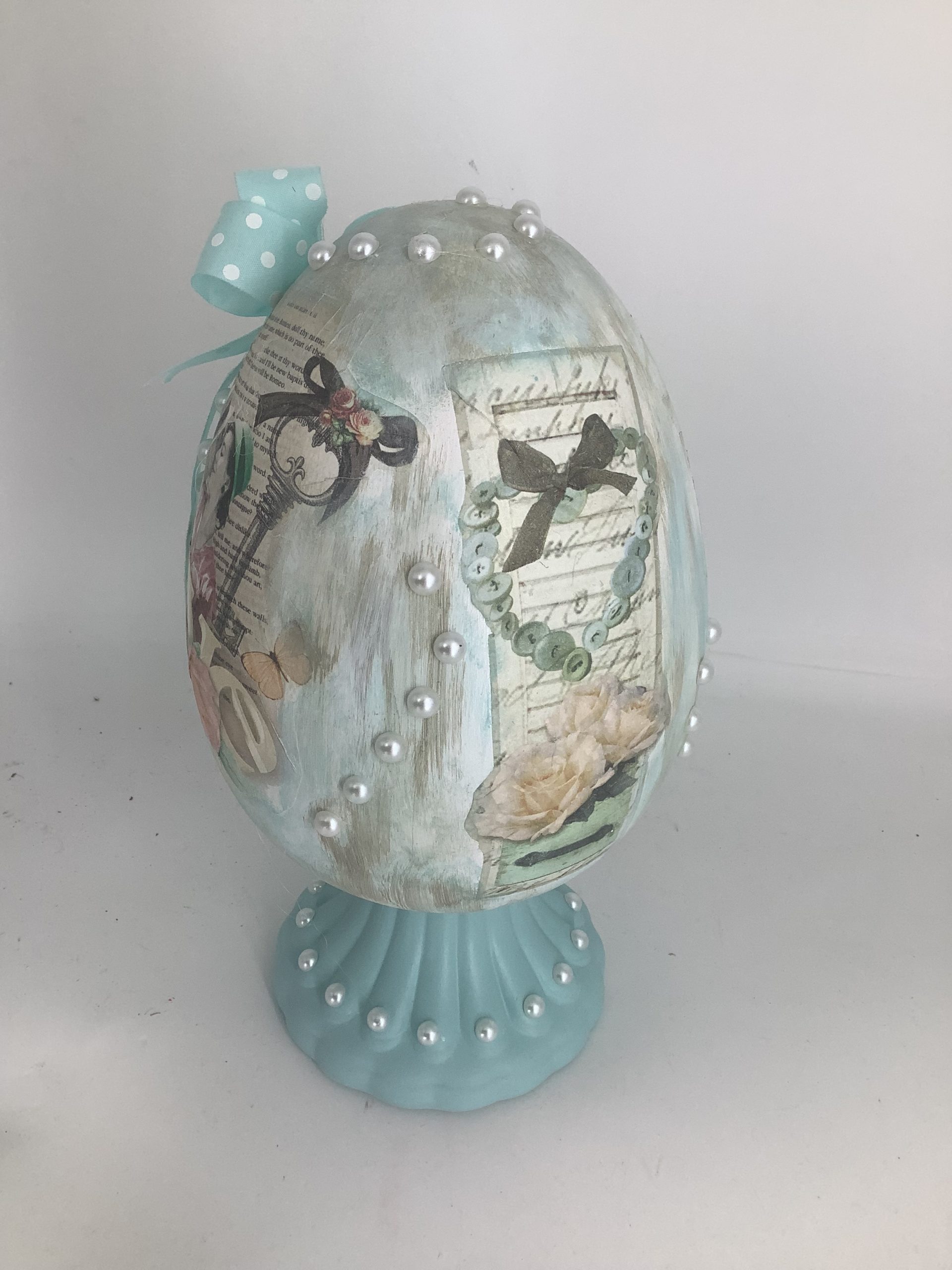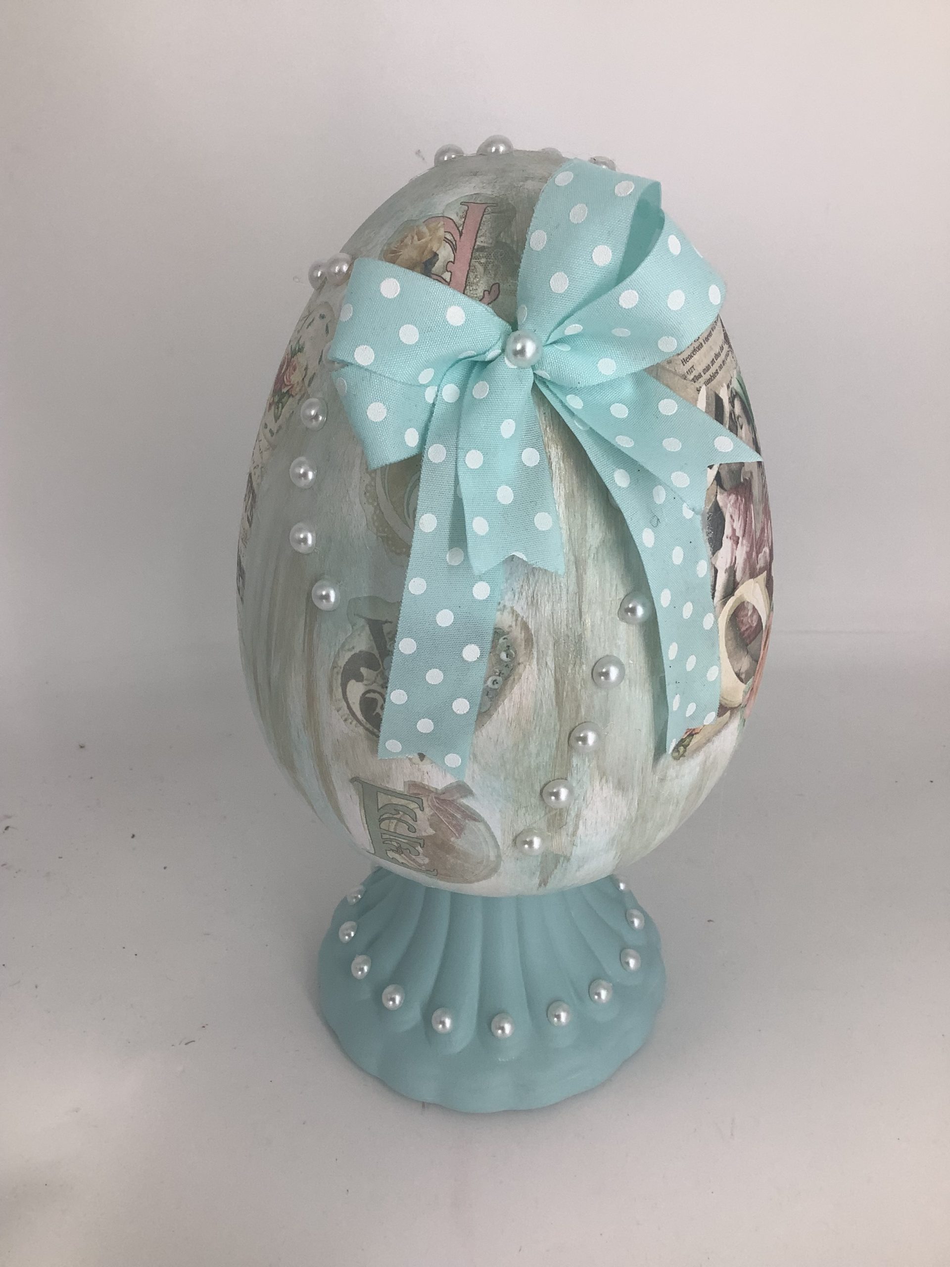 Χειροποίητο κεραμικό αυγό με αποχρώσεις της μέντας σε vintage στυλ, 20cm ύψος, με βάση σε αποχρώσεις με λεπτομέρεις χρήσης πατίνας το κάνουν ξεχωριστό. Ένα μοναδικό κομμάτι για να στολίσει και το δικό σας σπίτι με πασχαλινή διάθεση.