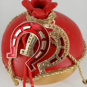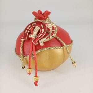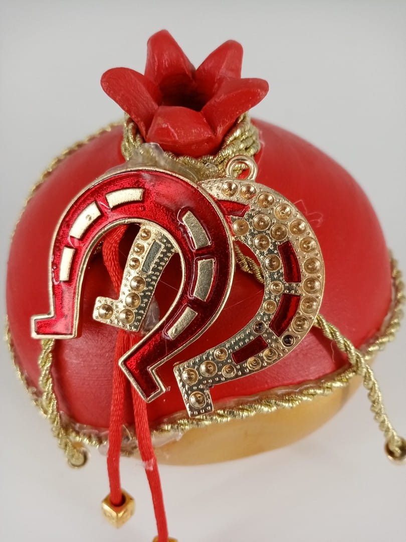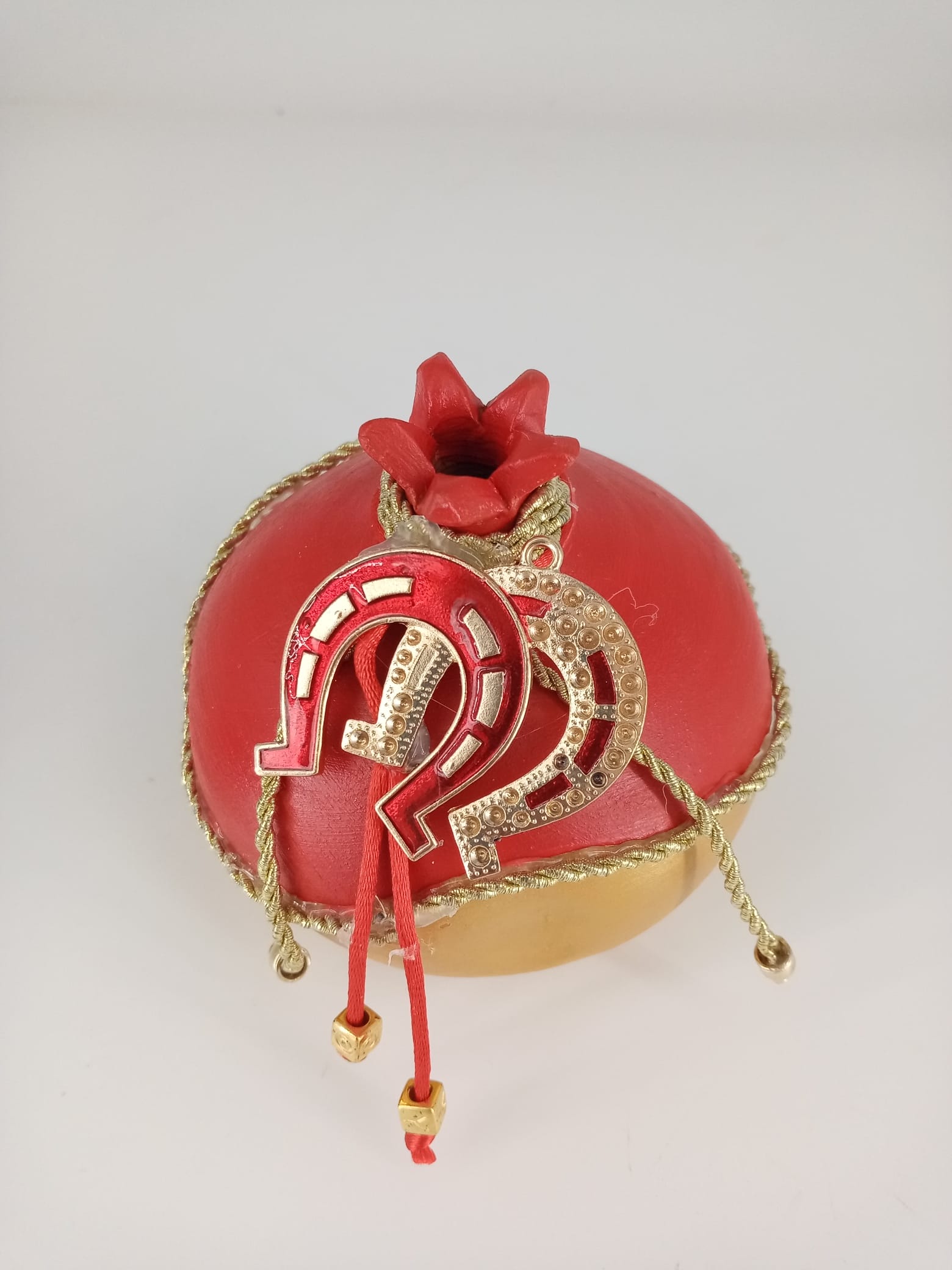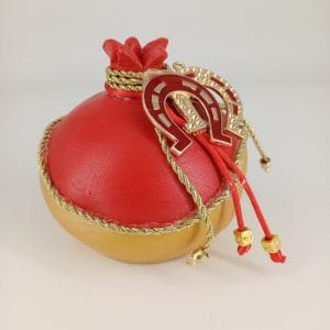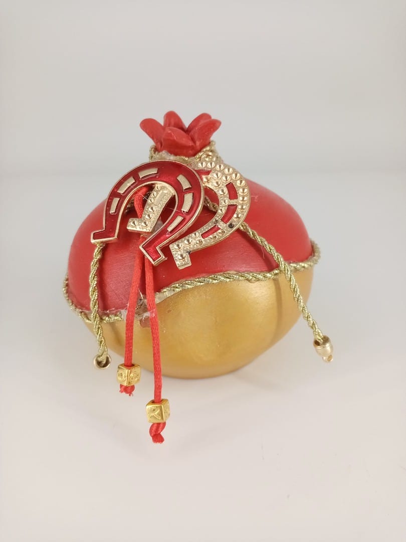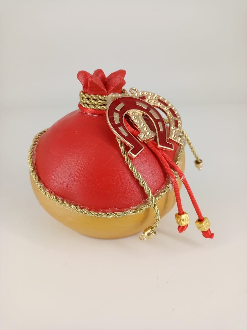 Κεραμικό ρόδι σε χρώματα κόκκινο χρυσό διακοσμημένο με μεταλλικά στοιχεία. Εξαιρετικό κομμάτι για δώρο αλλά και για το σπίτι σας.