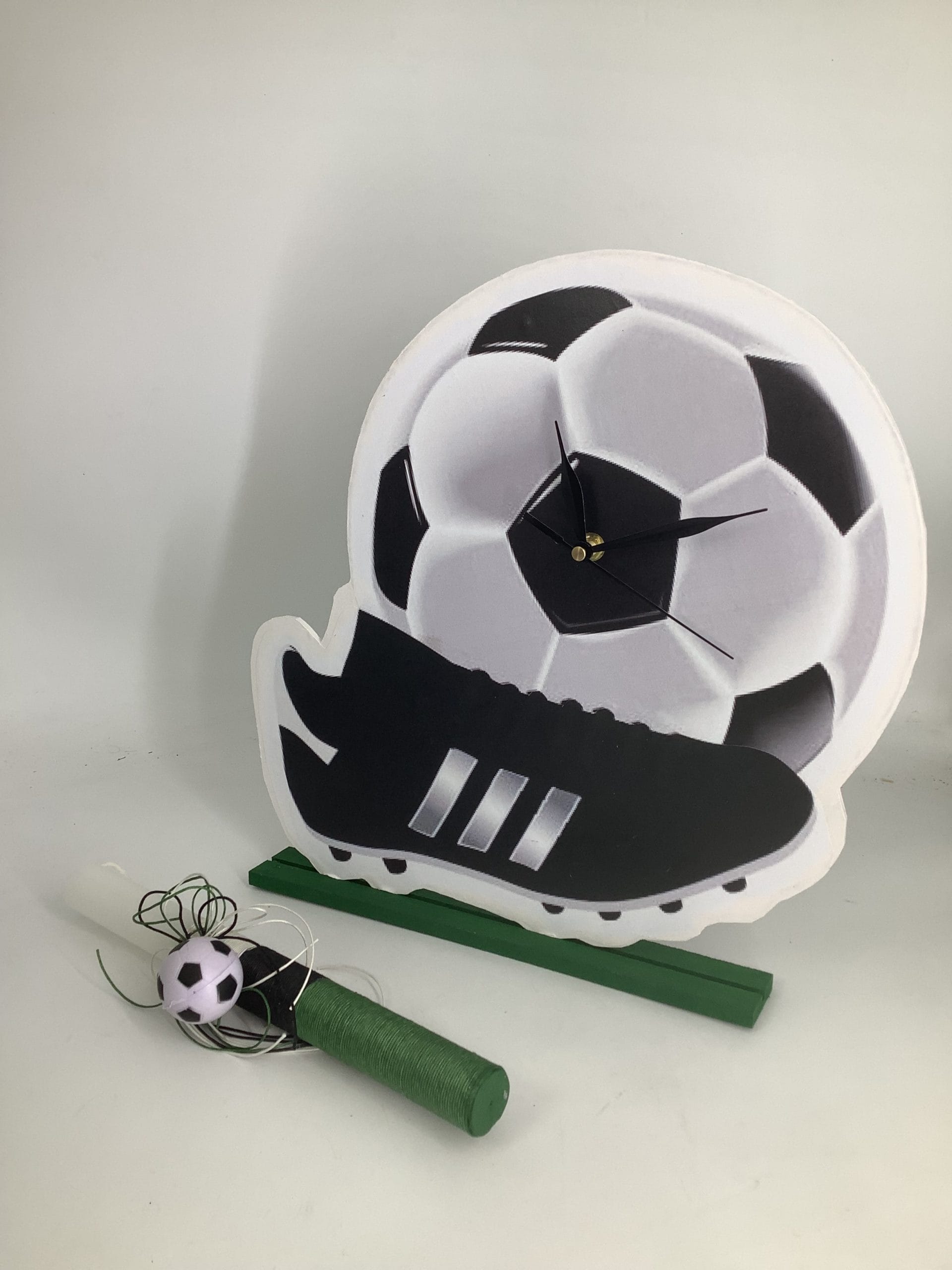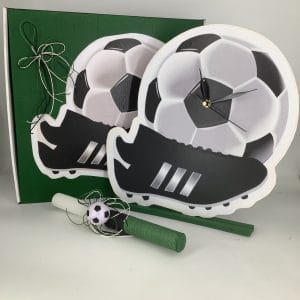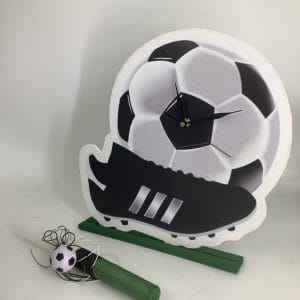 Λαμπάδα με ξύλινο ρολόι για τους λάτρεις του ποδοσφαίρου. Συνδυάζετε με μπρελόκ μπάλα που διακοσμεί την λαμπάδα. Εντυπωσιάστε το βαφτιστήρι σας με μια λαμπάδα από το αγαπημένο του άθλημα.
