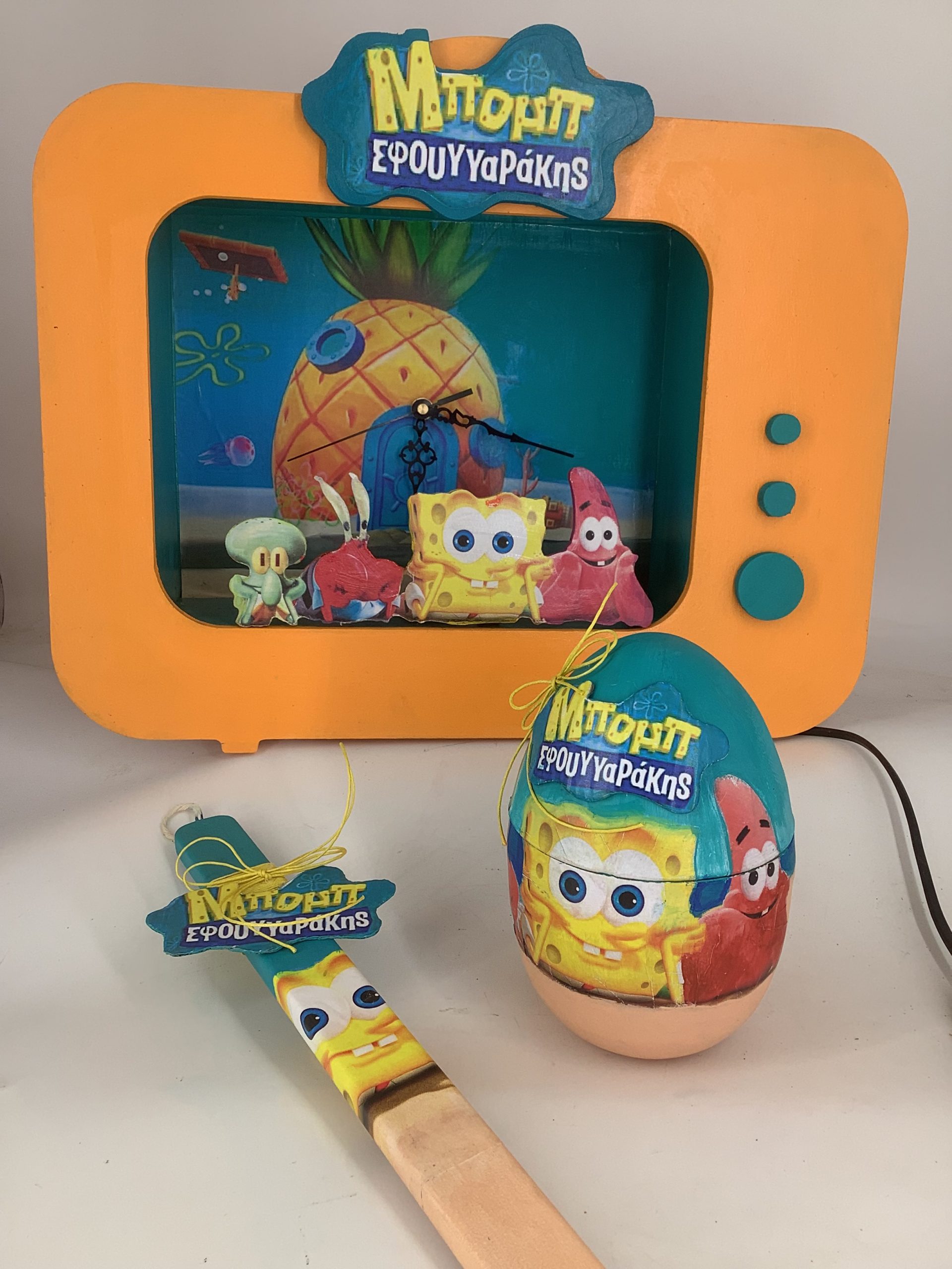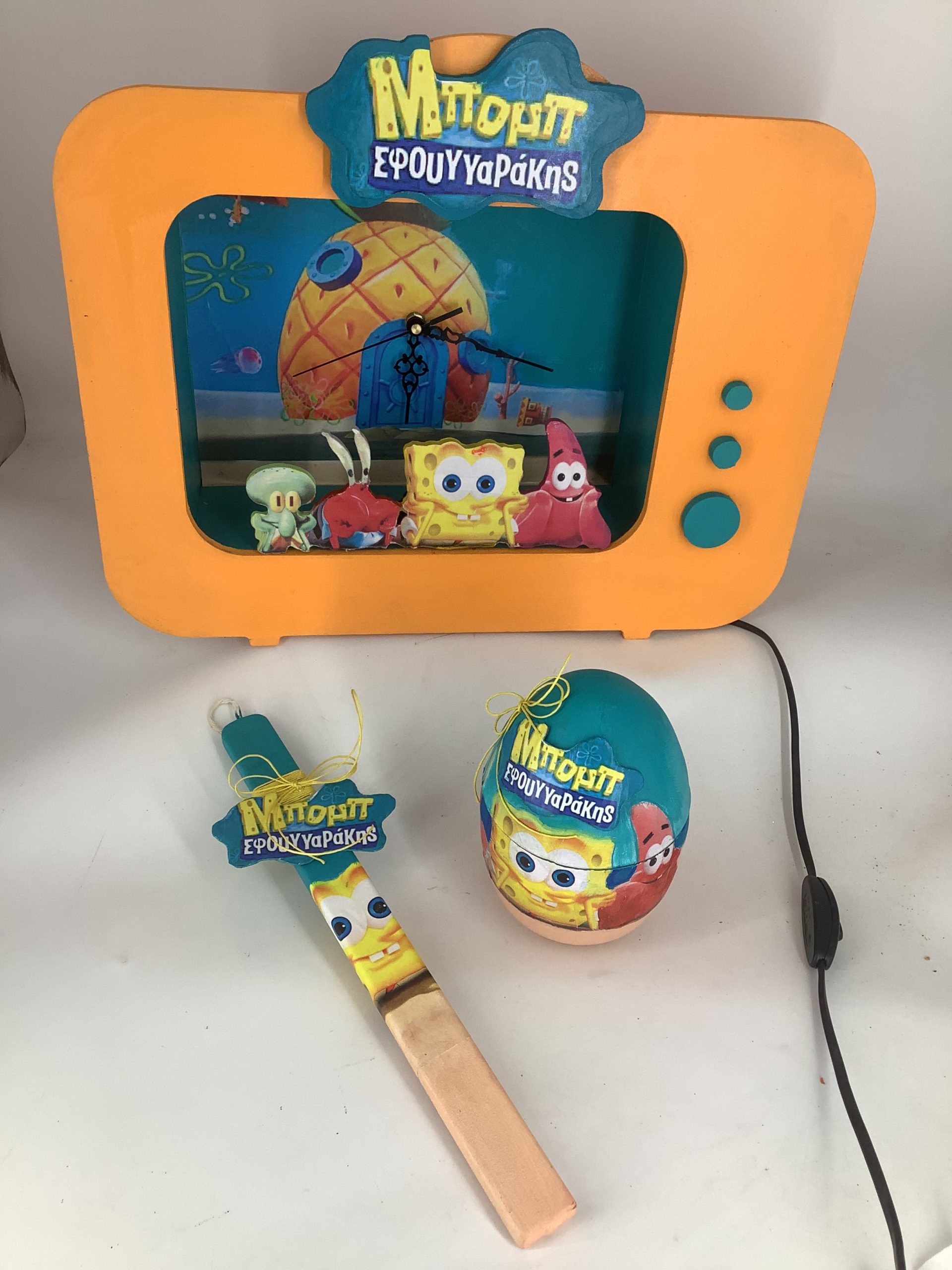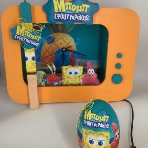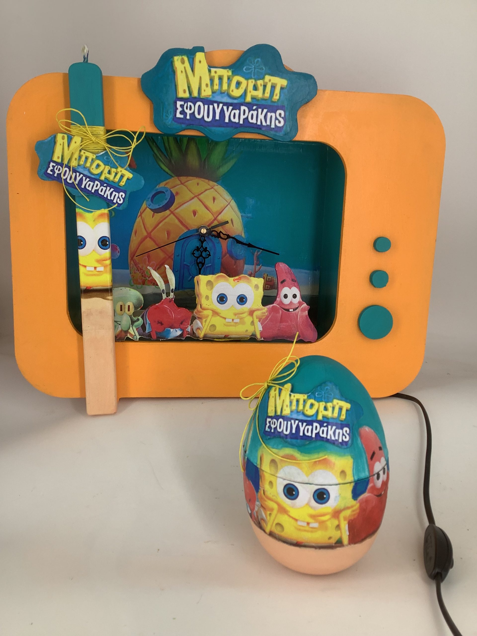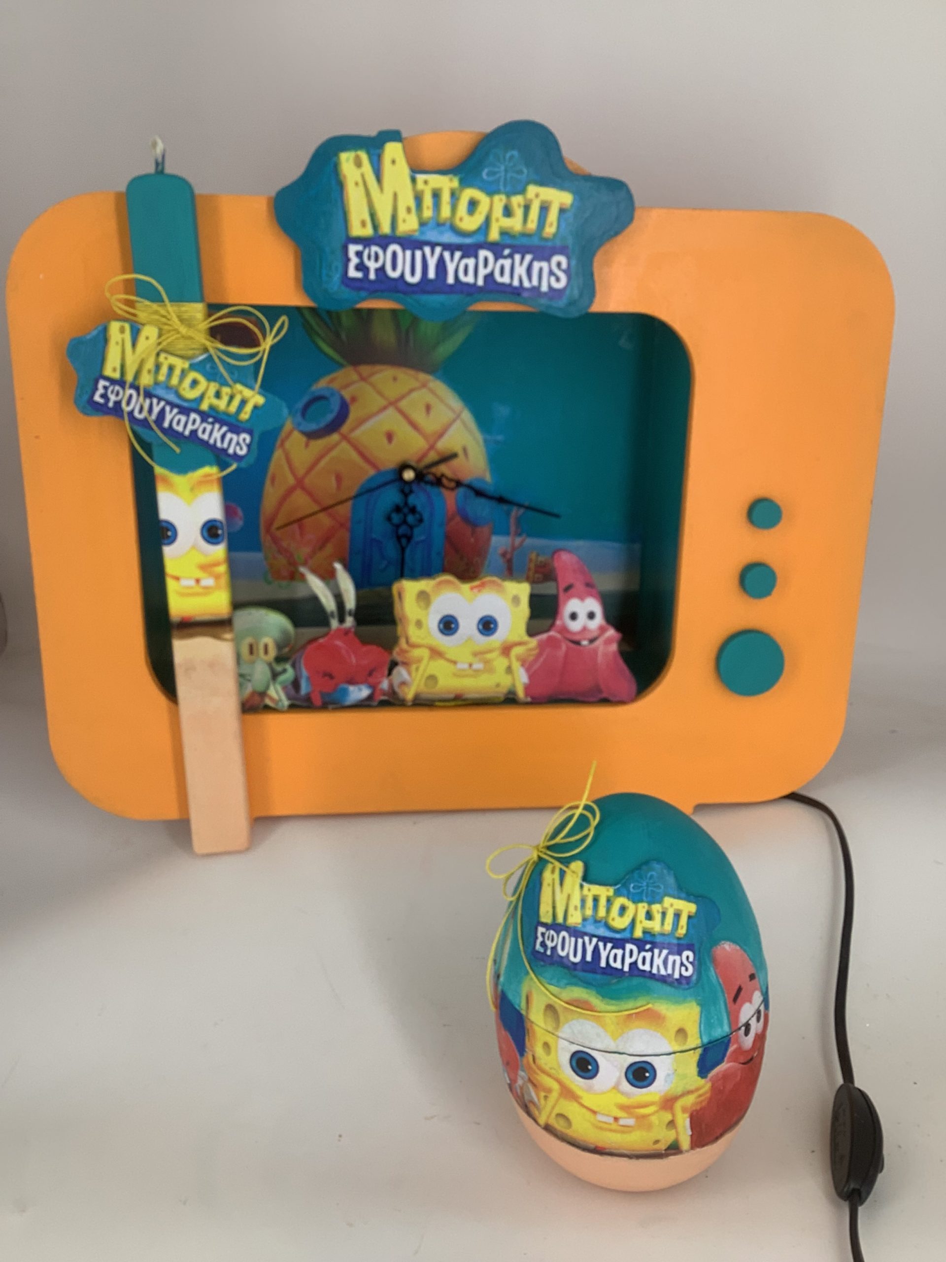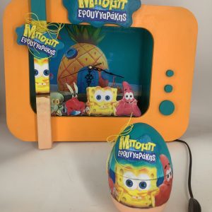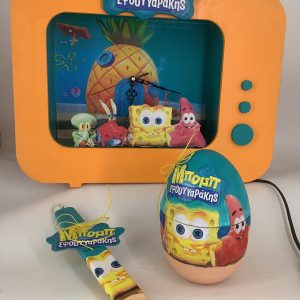 Ο αγαπημένος ήρωας των παιδιών Μπόμπ Σφουγγαράκης τώρα σε ένα μοναδικό φωτιστικό μεγάλης διάστασης κάτω από το βυθό της θάλασσας στο βυθό του μπικίνι. Ένα υπέροχο φως για το δωμάτιο των παιδιών σε σχήμα τηλεόρασης για να θυμίζει τον αγαπημένο ήρωα κάθε παιδιού. Φτιάξτε την δική σας τηλεόραση με το δικό σας αγαπημένο ήρωα. Μια επιλογή για μοναδικά βαφτιστήρια και απαιτητικούς νονούς.