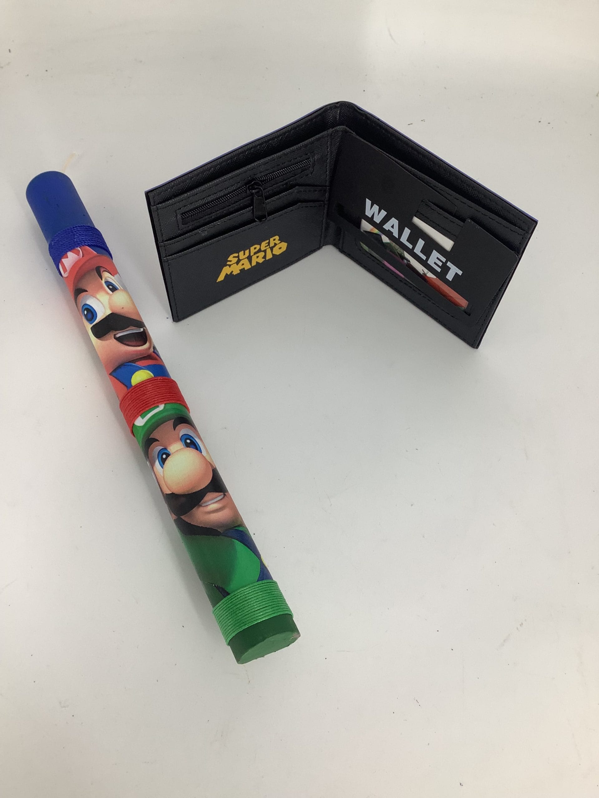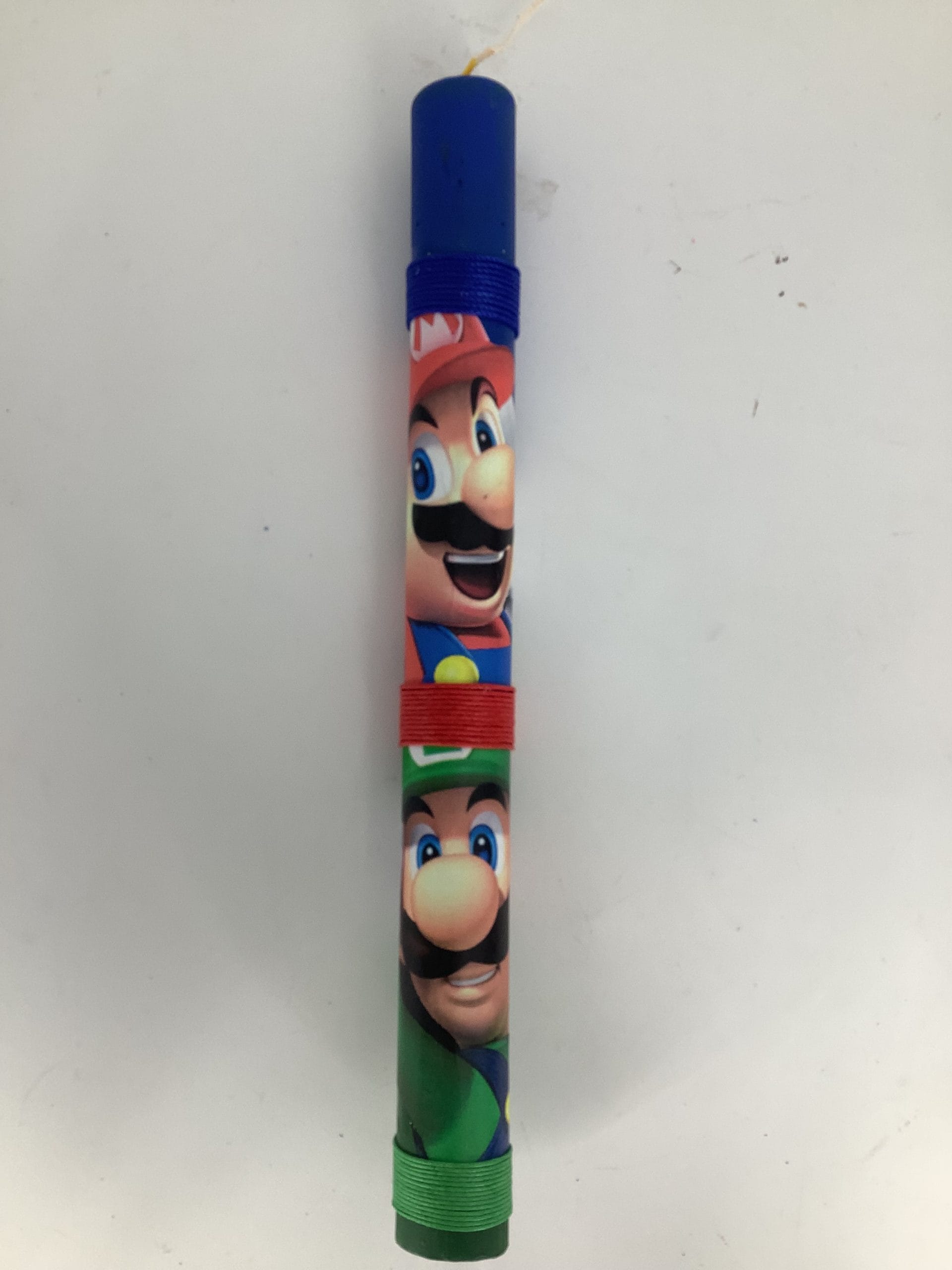 Υπέροχη μοναδική χειροποίητη λαμπάδα με τον ήρωες των παιδιών Super Mario και Luigi. Περιλαμβάνει πορτοφόλι μαγνητάκι με το σήμα του και χειροποίητη λαμπάδα με τεχνική και ζωγραφική στο χέρι. Επιλέξτε ανάμεσα σε διάφορα σχέδια και χρηστικά αντικείμενα και κάντε κι εσείς το βαφτιστήρι σας μια λαμπάδα με δώρο είναι μοναδικό συλλεκτικό αντικείμενο.