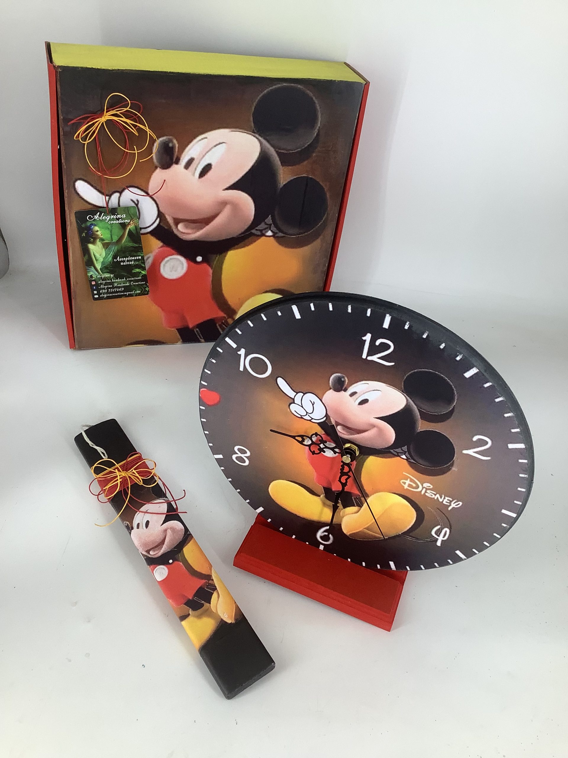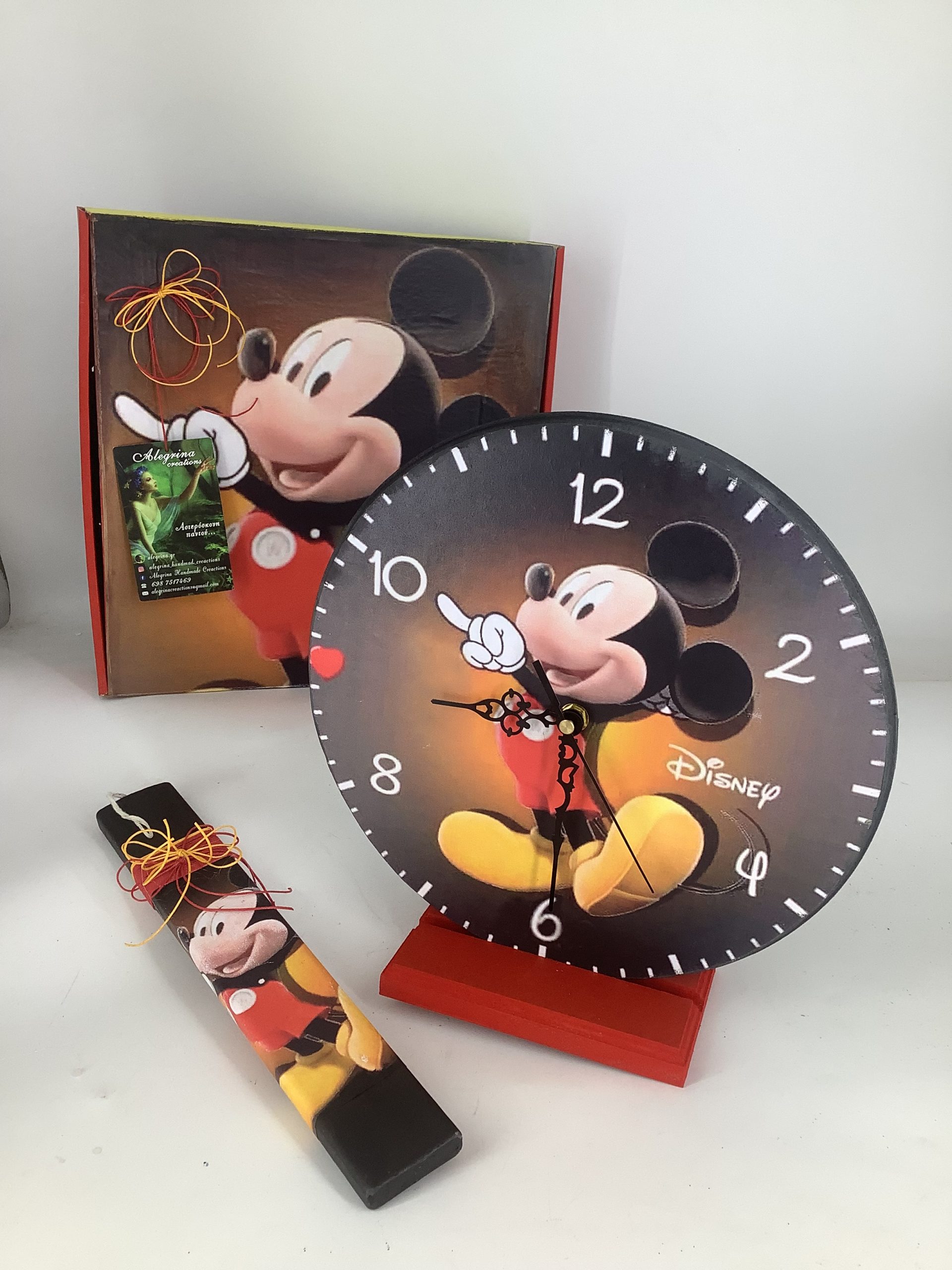 Χειροποίητη ρολόι με τον αγαπημένο σας Mickey Mouse. Συνοδεύεται με λαμπάδα στο ίδιο ύφος για να είναι και φέτος η λαμπάδα σας μοναδική.