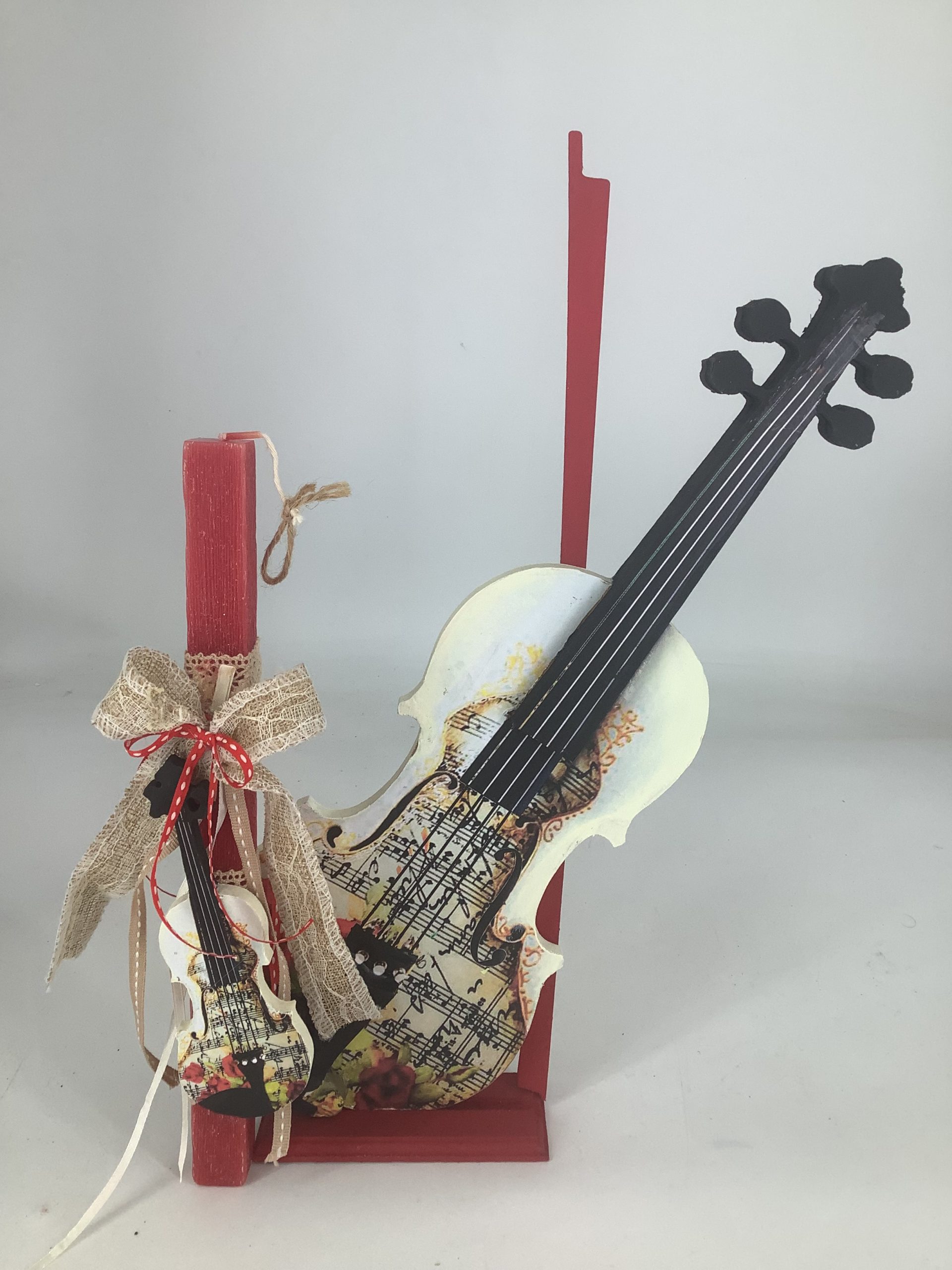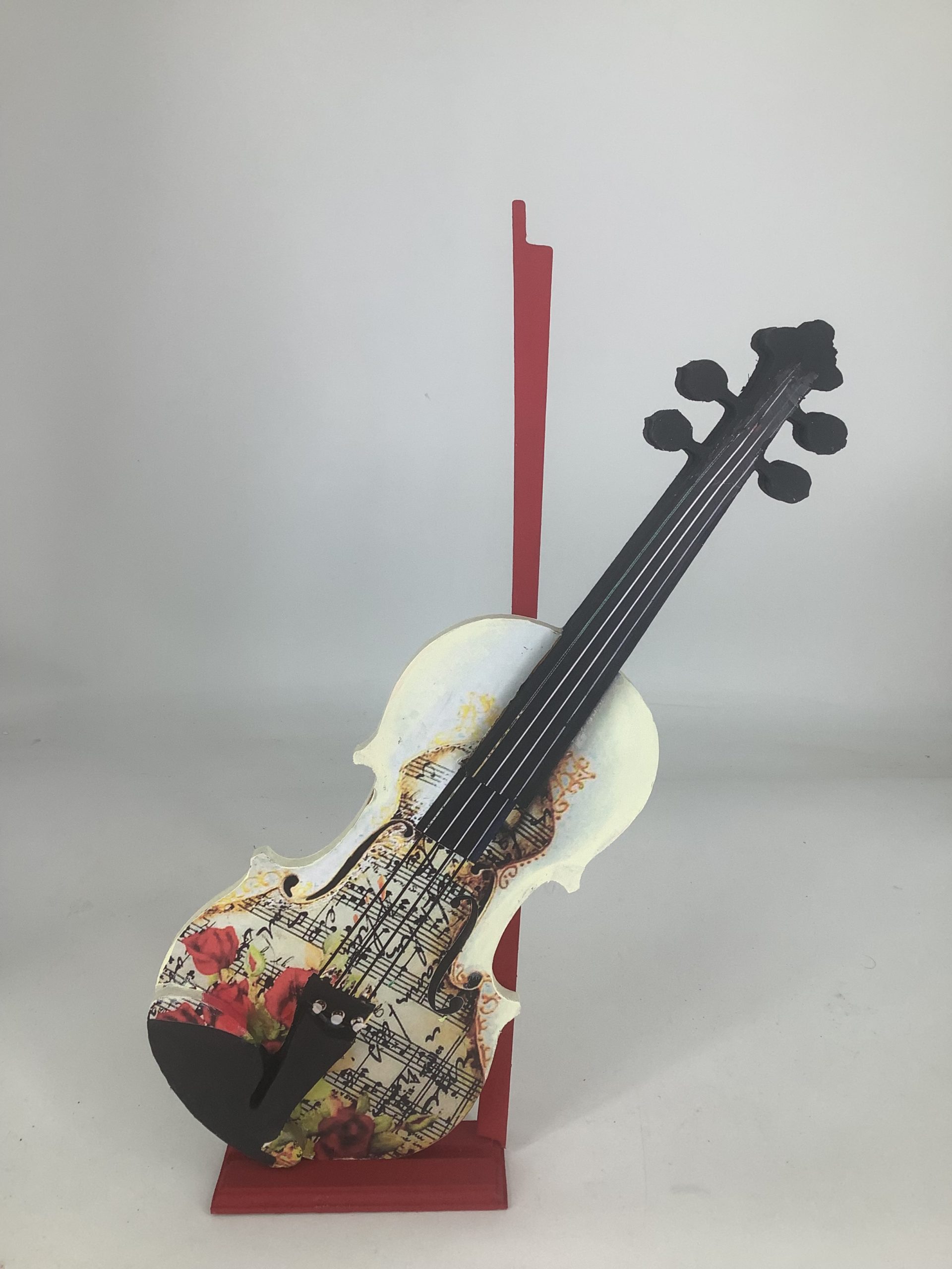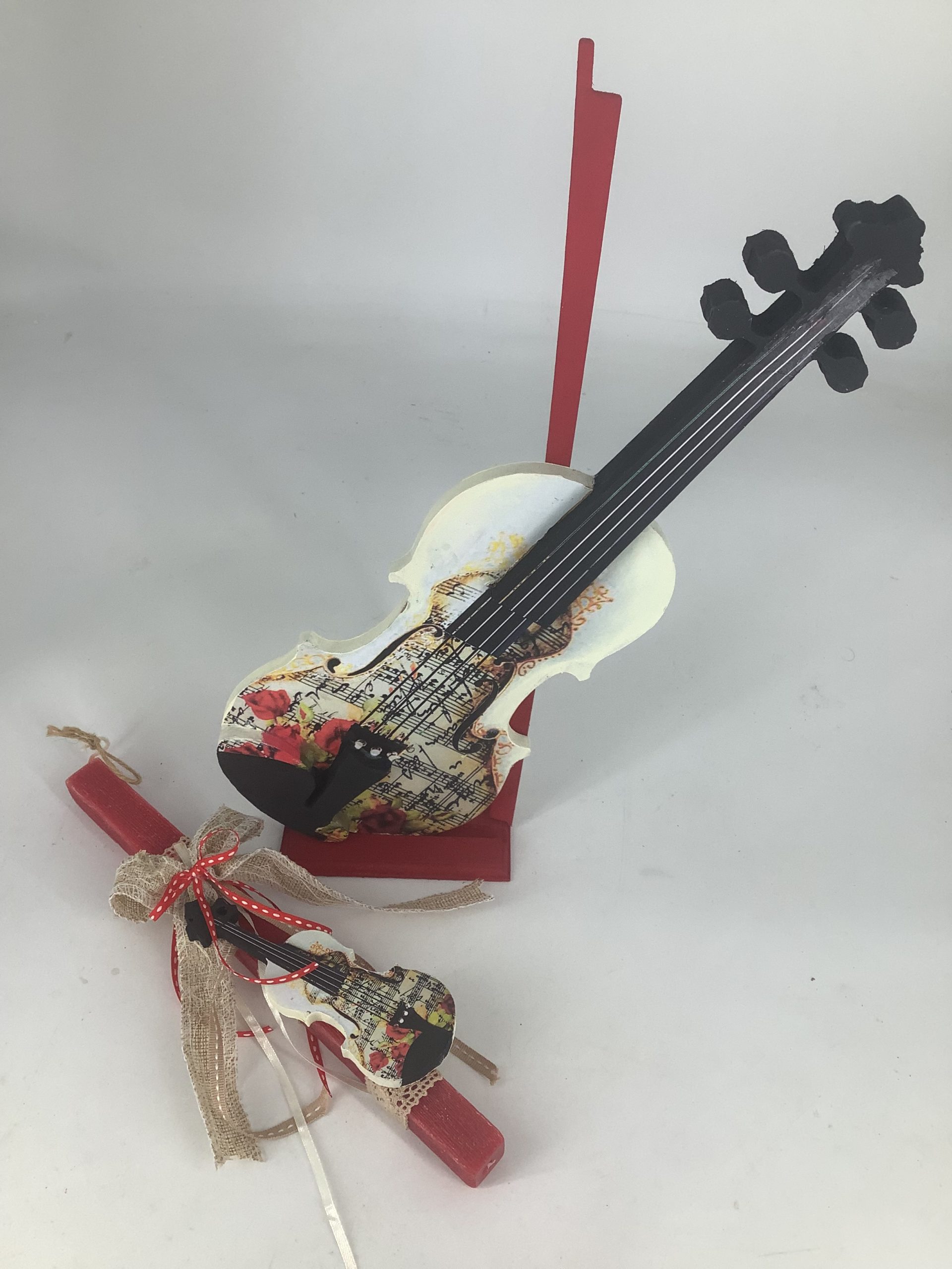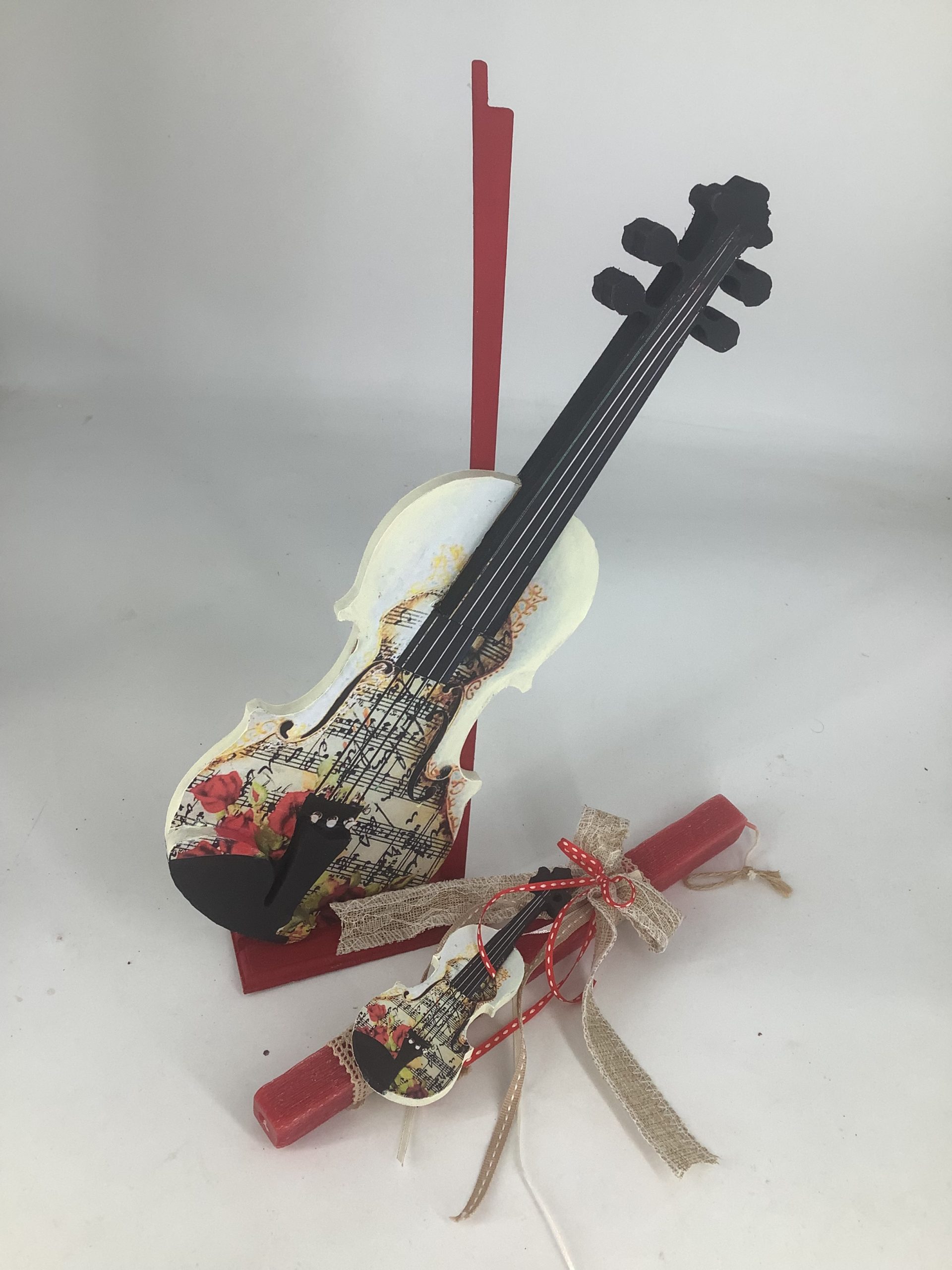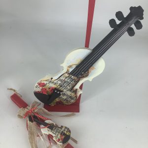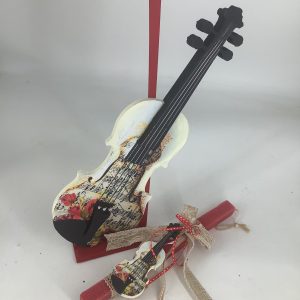 Διακοσμητικό χειροποίητο βιολί σε παπαρούνες τρισδιάστατο σε αποχρώσεις του κόκκινου και μπεζ για να κάνετε δώρο στους αγαπημένους σας βαφτιστήρι.