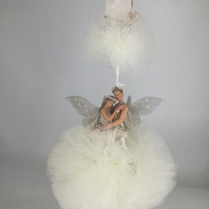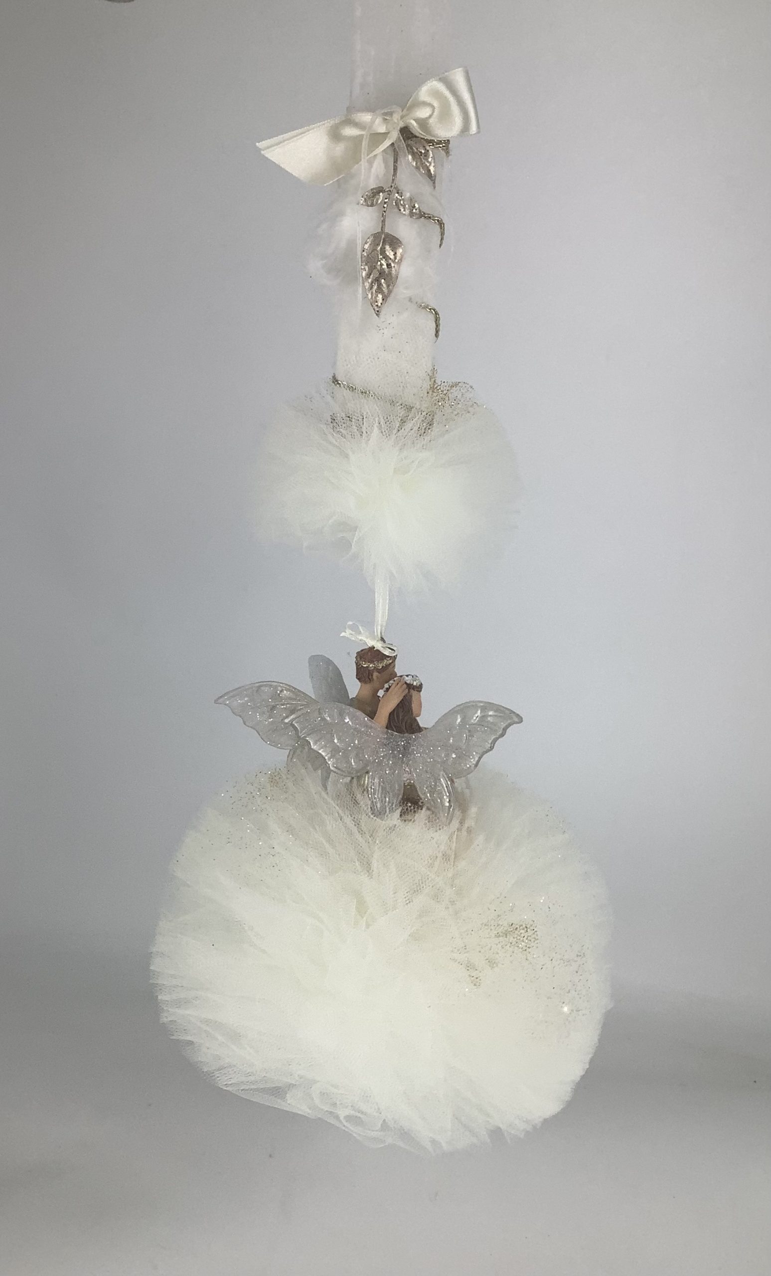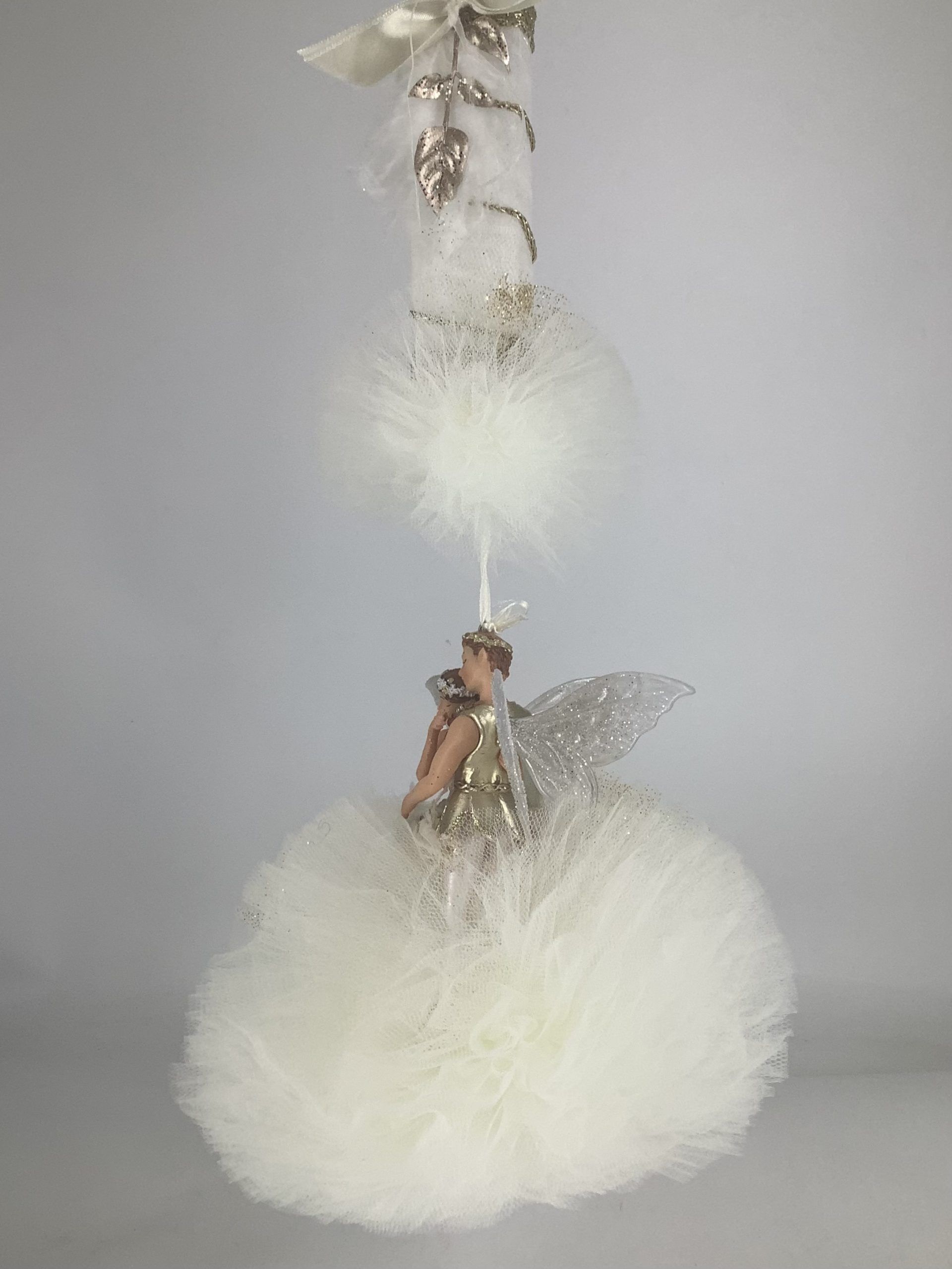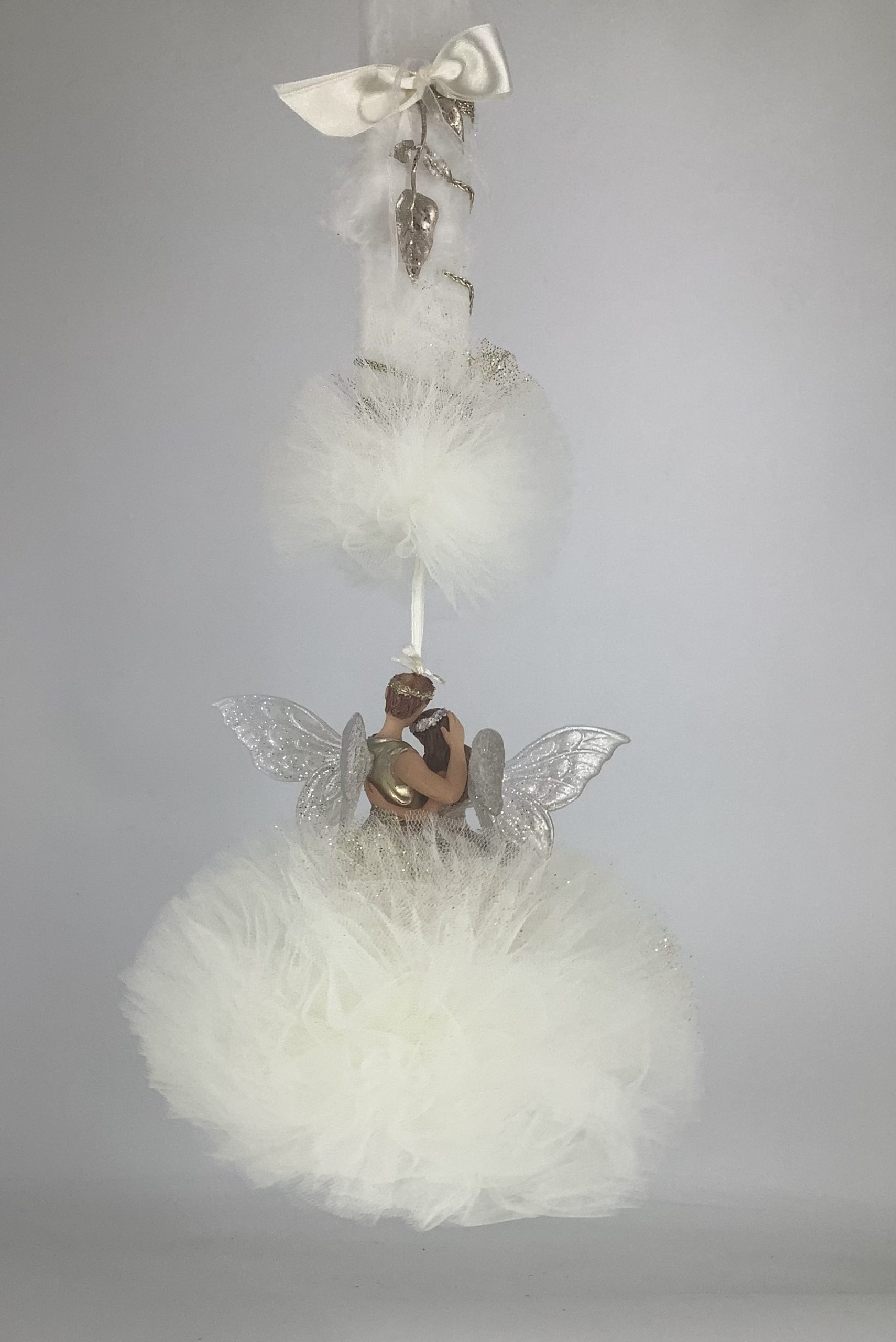 Υπέροχη λαμπάδα με ζευγάρι νεράιδων σε αποχρώσεις της λευκού για να εντυπωσιάσετε την αγαπημένη σας βαφτιστήρα. Μια εξαιρετική επιλογή που θα λατρέψουν οι νονοί και τα βαφτιστήρια