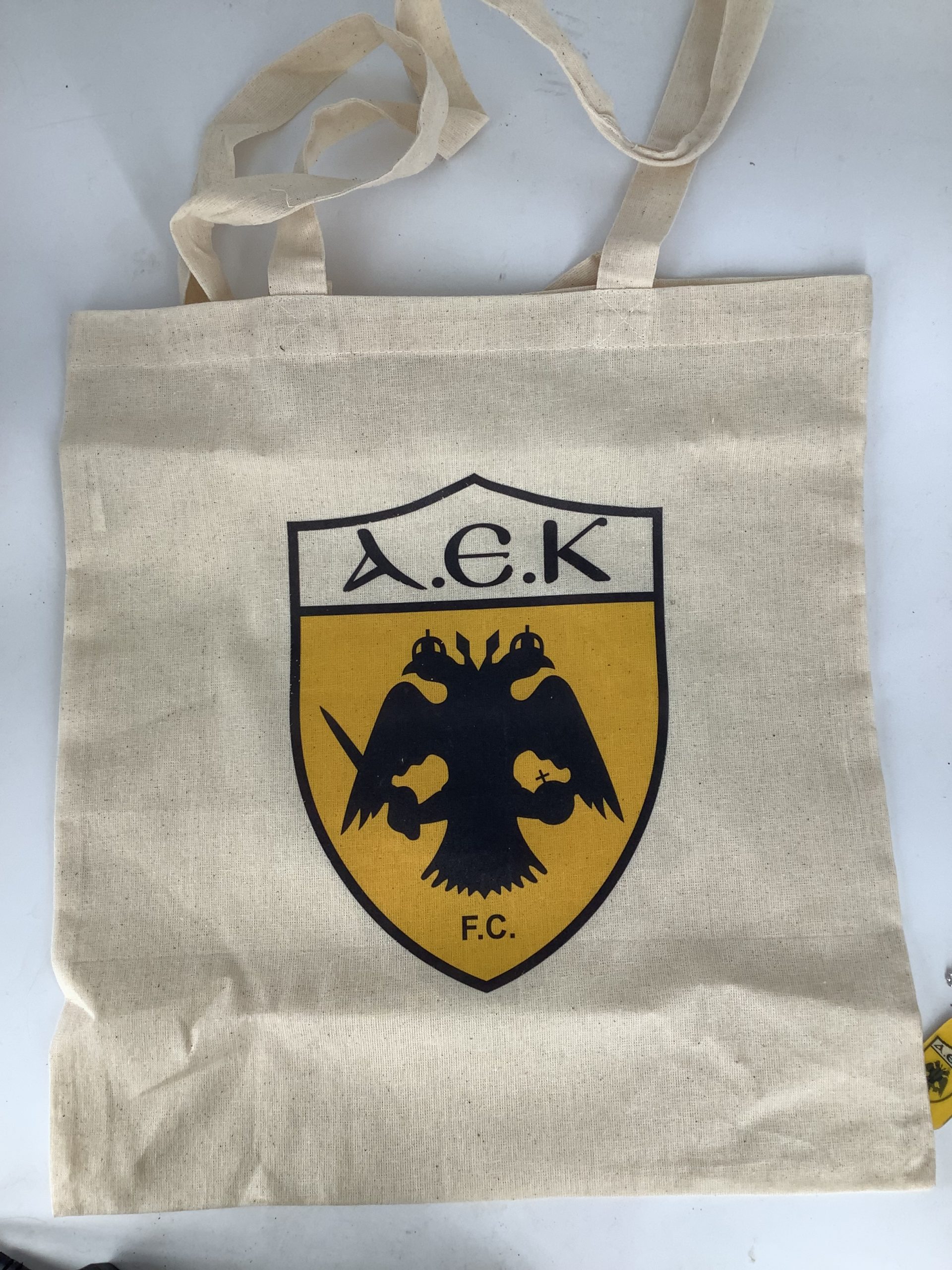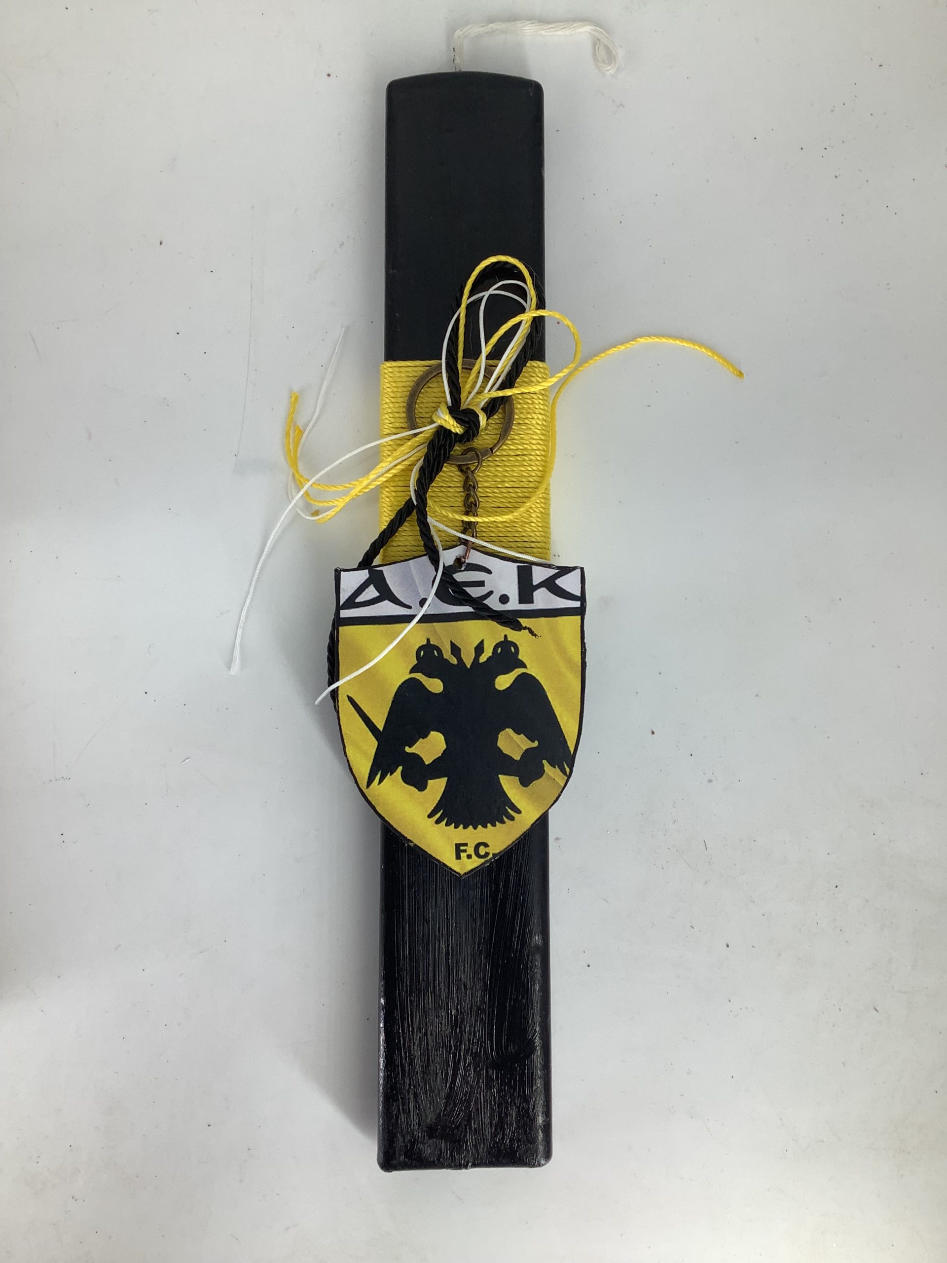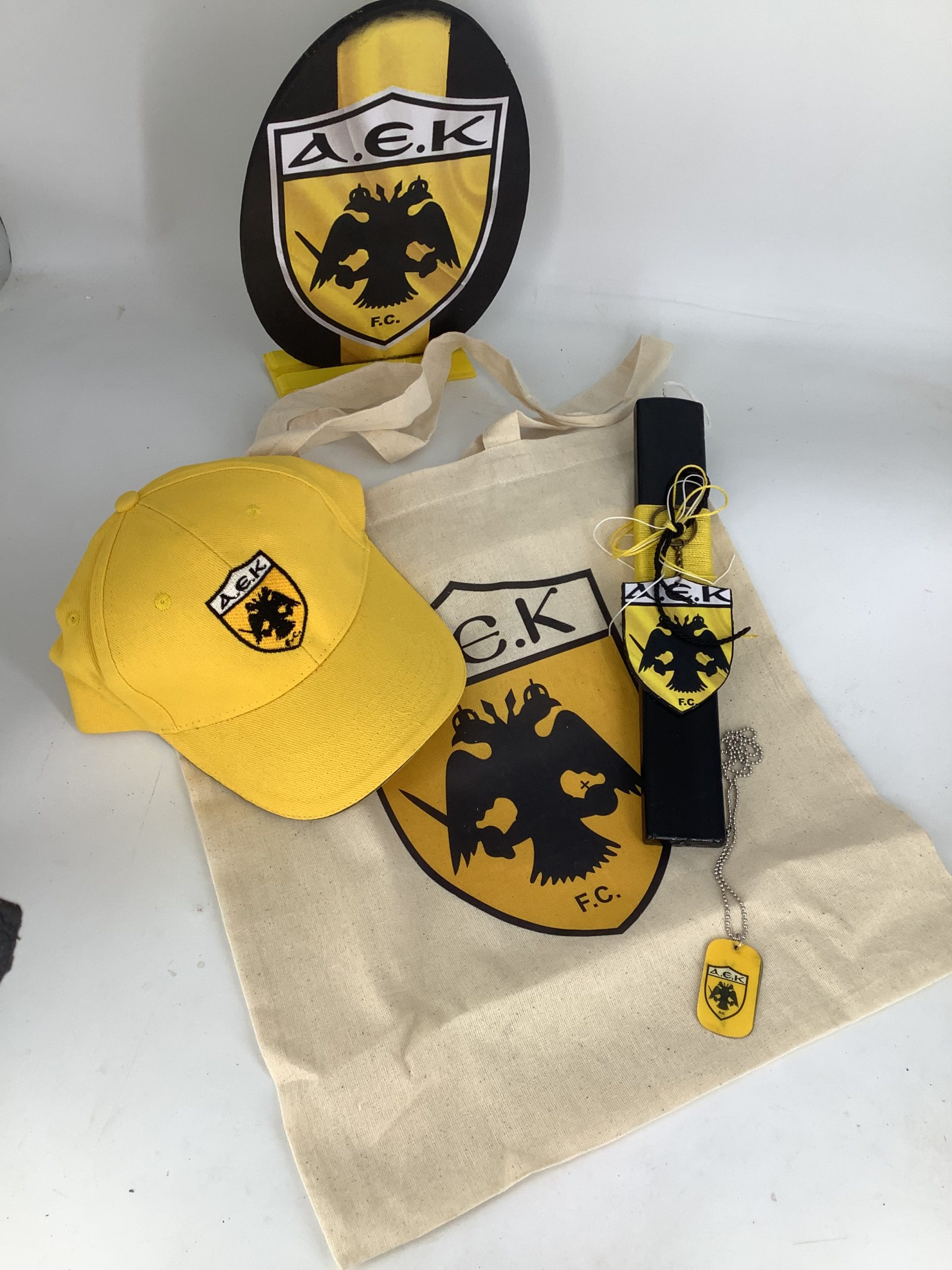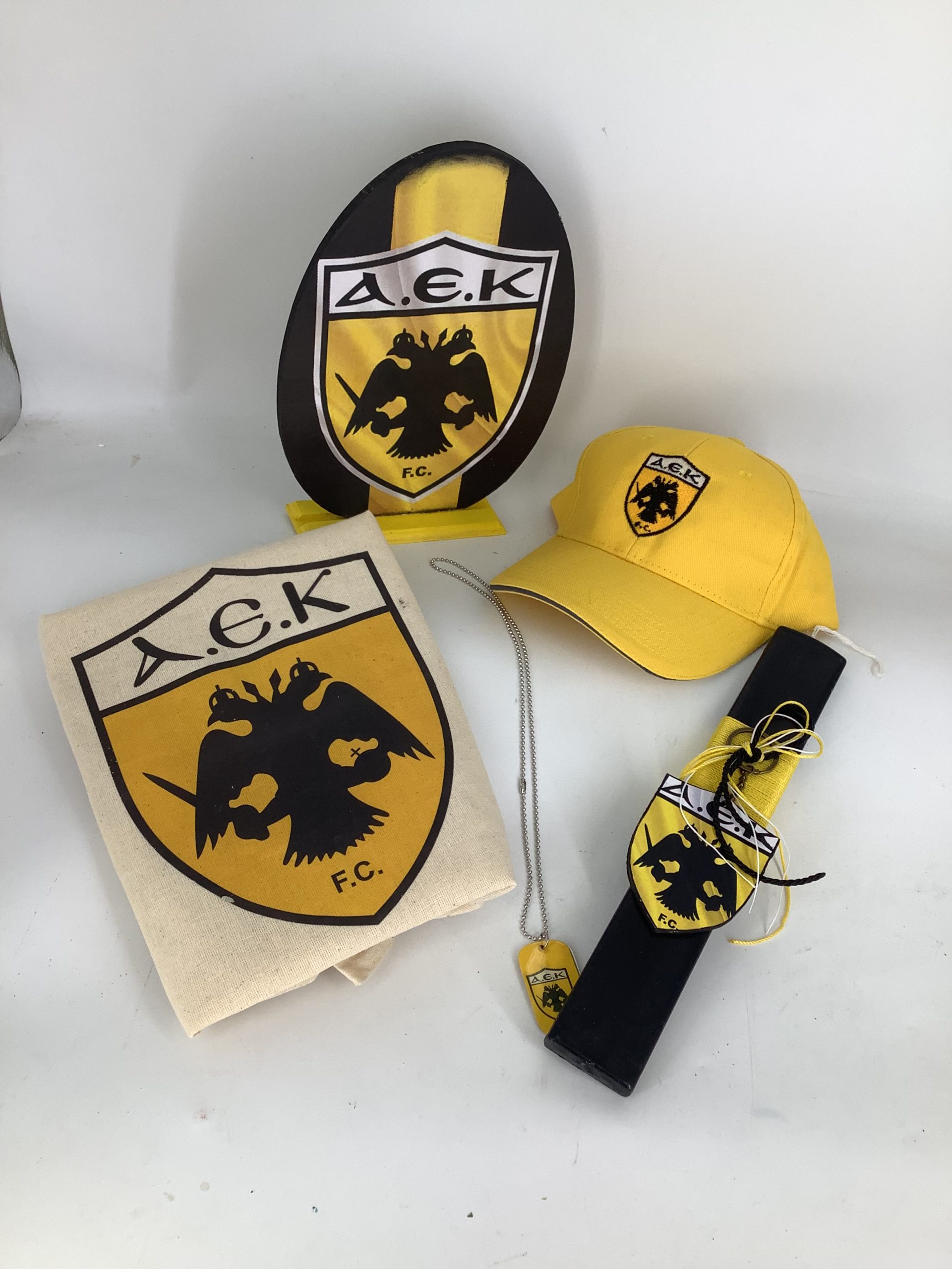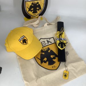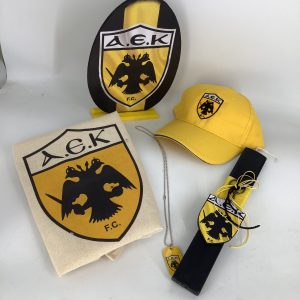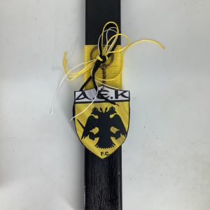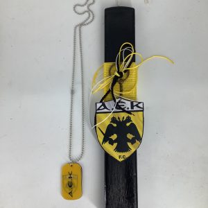 Υπέροχο πασχαλινό πακέτο δώρου για τους λάτρεις της αγαπημένη σας ομάδας της ΑΕΚ. Συνδυάζετε με λαμπάδα στην οποία έχει επάνω μπρελόκ με το σήμα της ομάδας, μεταλλική ταυτότητα, καπέλο, υφασμάτινη τσάντα καθώς και ξύλινο αυγό όλα διακοσμημένα με την αγαπημένη σας ομάδα. Εντυπωσιάστε το βαφτιστήρι σας δίνοντας του ένα πακέτο δώρων από την ομάδα του. Ενημερώστε μας αν θέλετε να προσθέσουμε και τσουρέκι στο πακέτο σας με μικρή επιπλέον χρέωση.