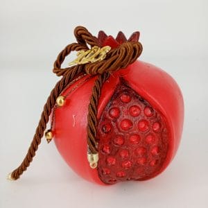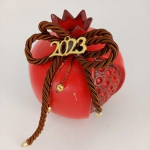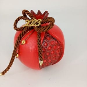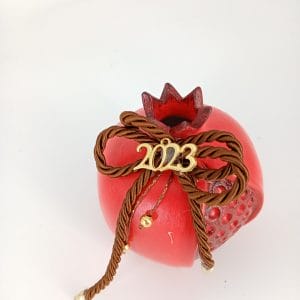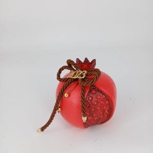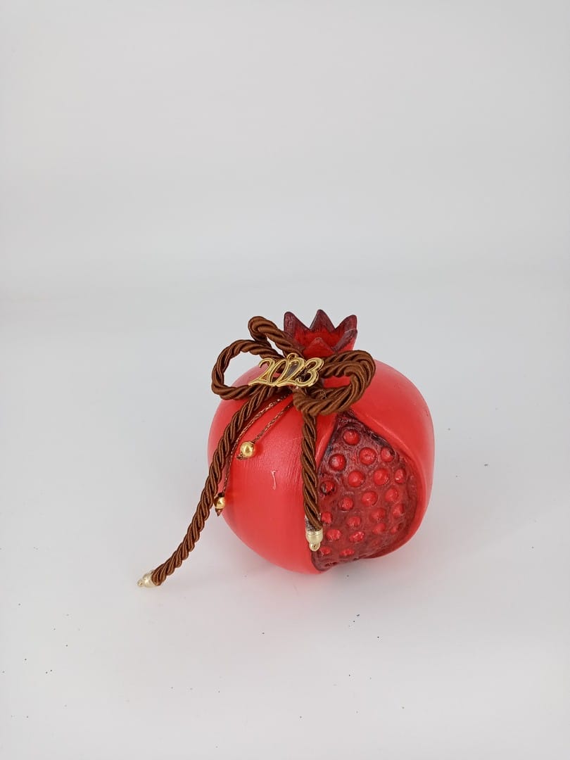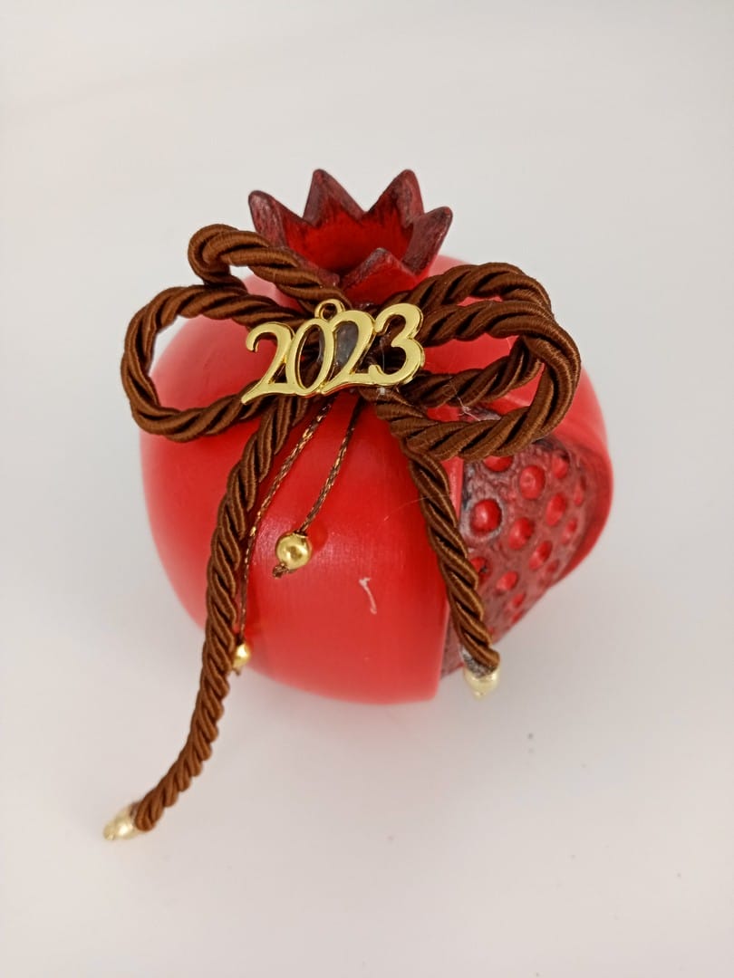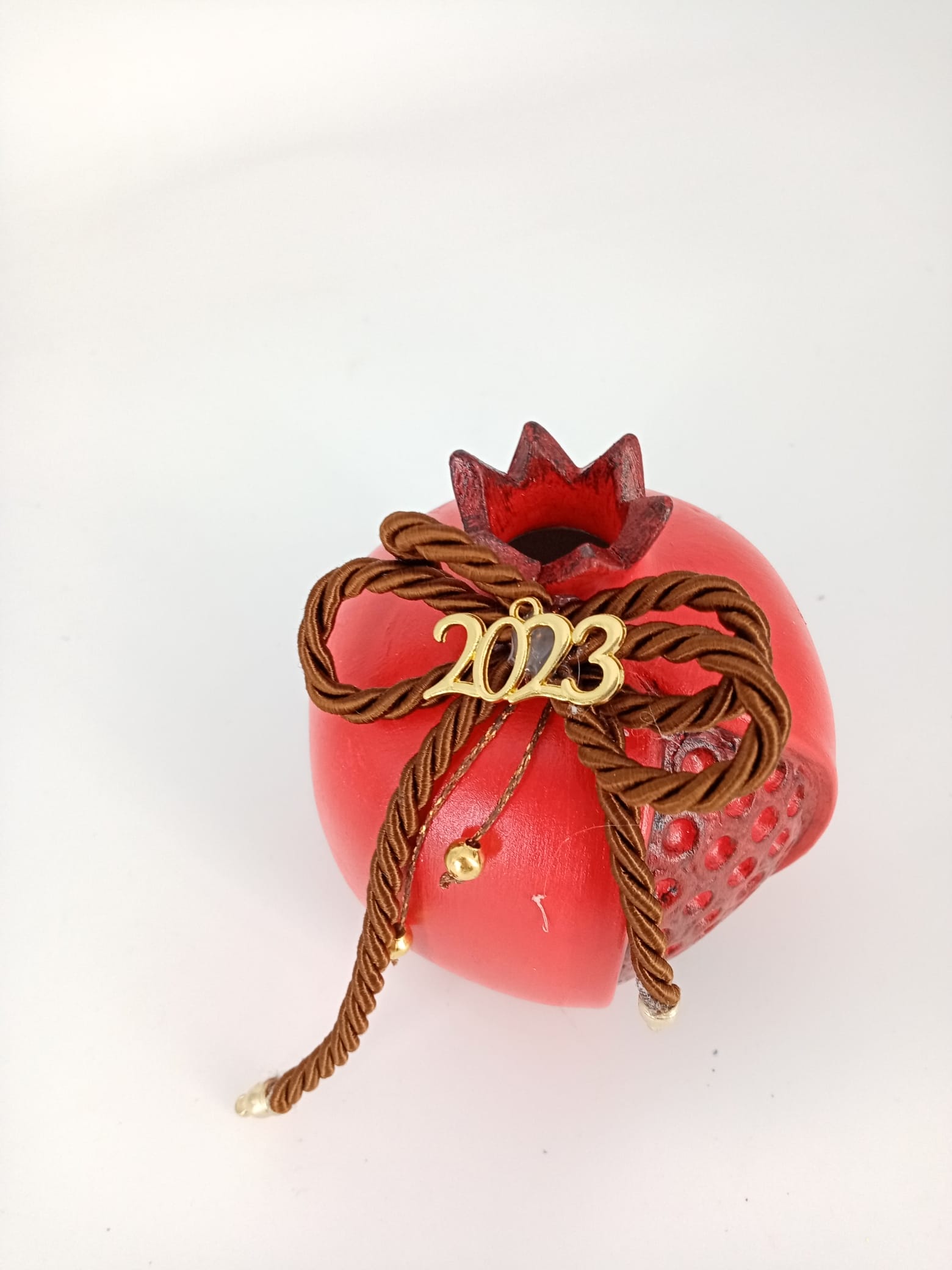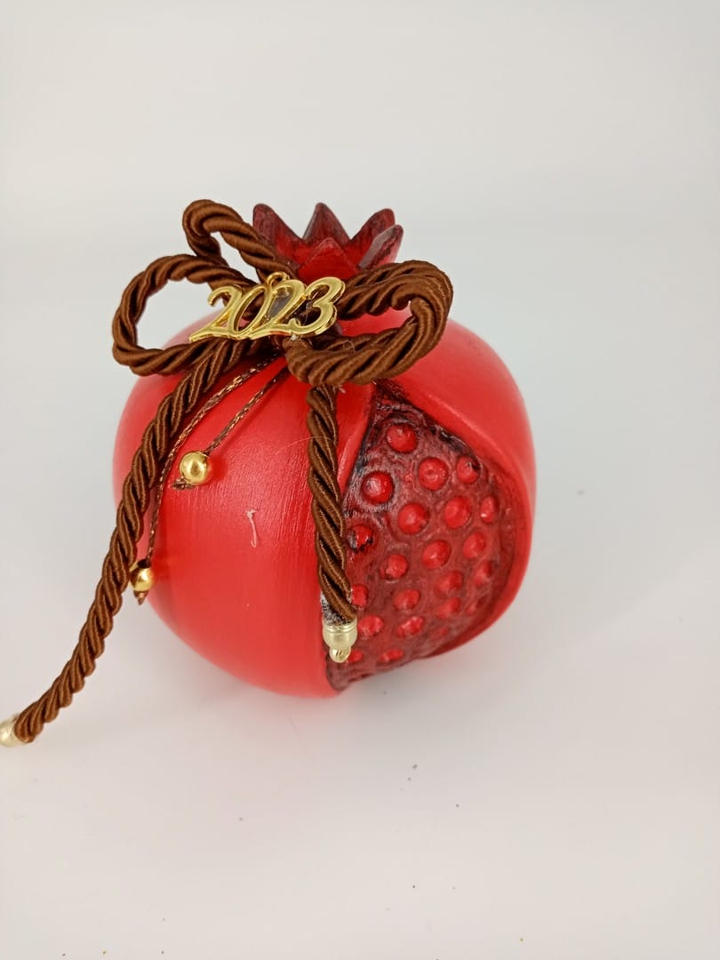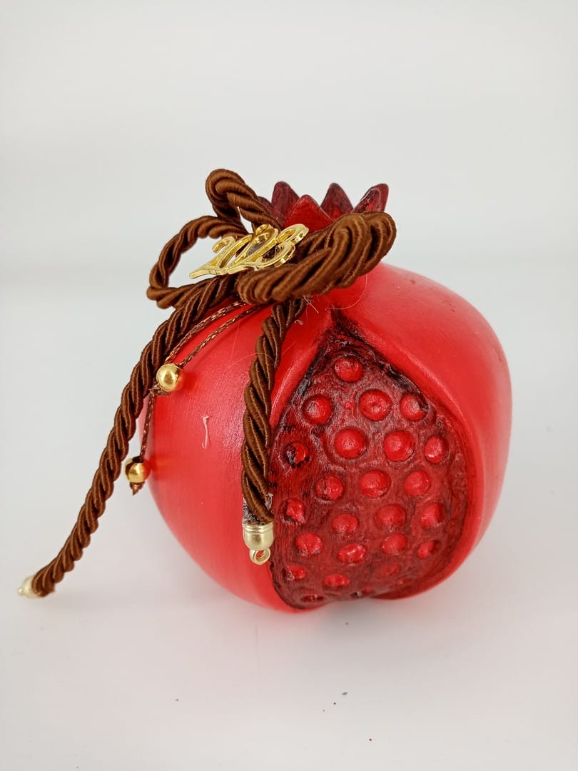 Κόκκινο μεσαίο ρόδι περασμένο με πατίνες και διακοσμημένο με χοντρό σκοινί και μεταλλικά στοιχεία στο χρώμα του χρυσού. Υπέροχη επιλογή για ένα χειροποίητο μοναδικό δώρο.